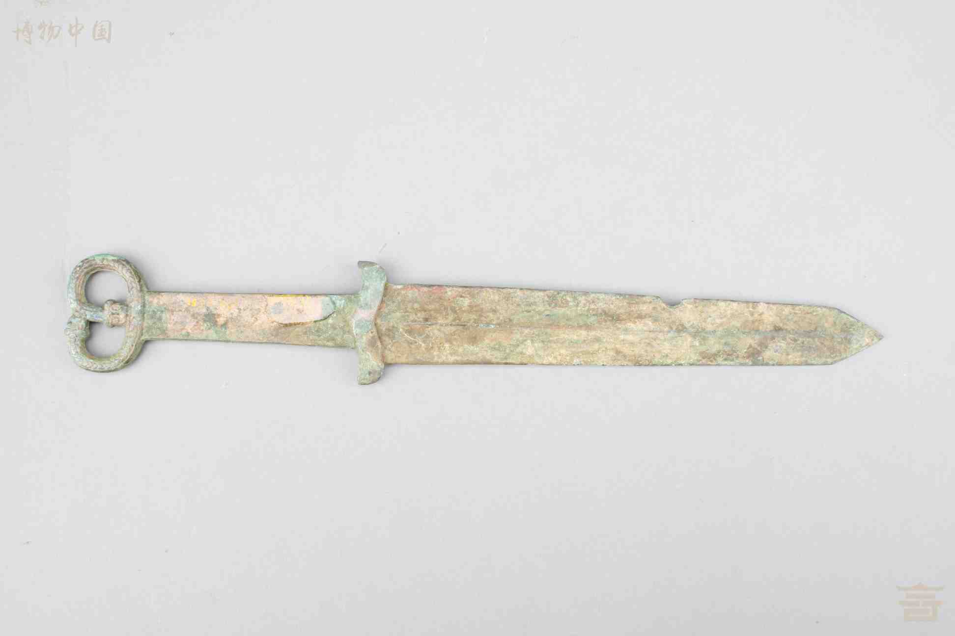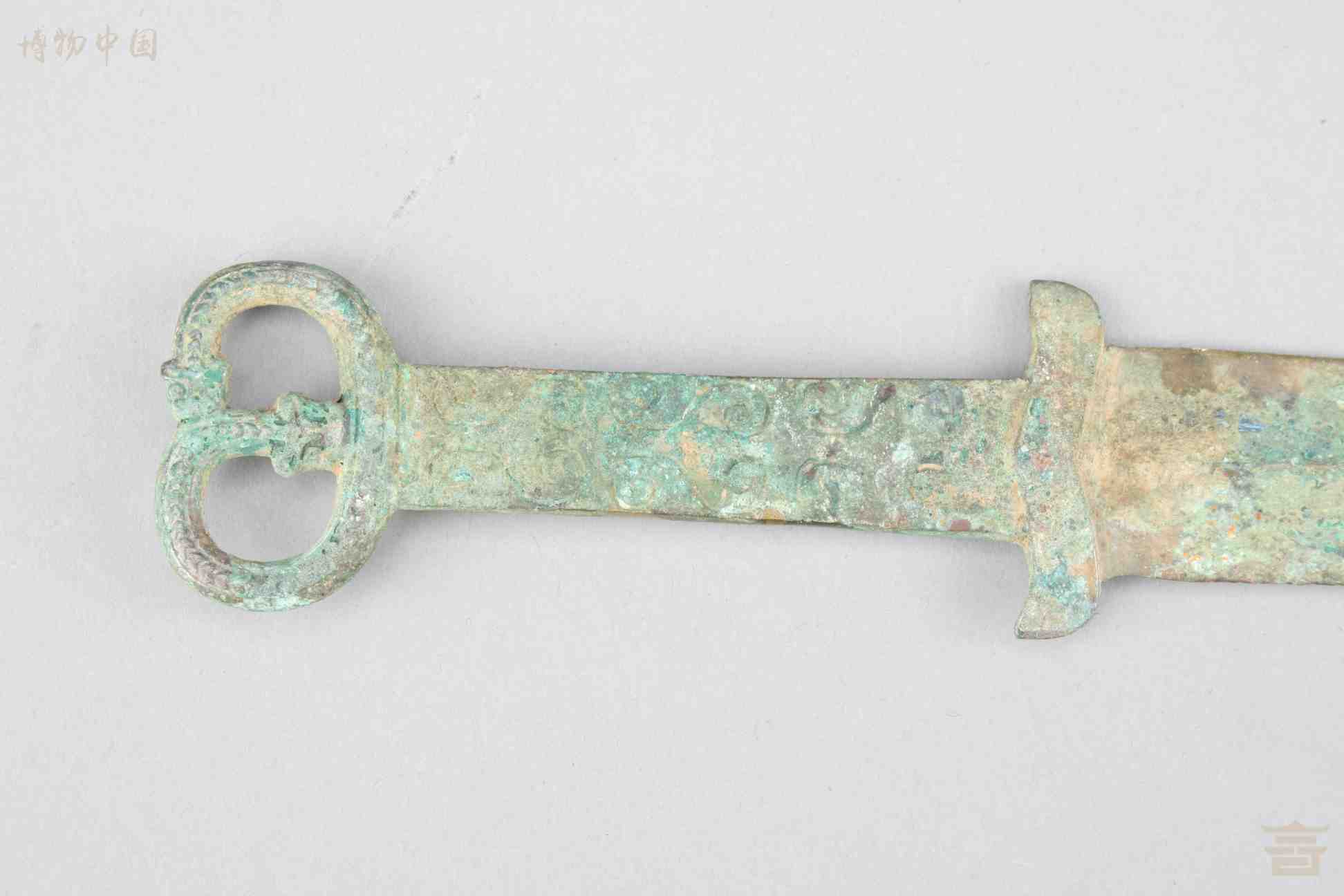 > 战国螭形双环首云纹扁茎双翼格柱脊曲刃短剑