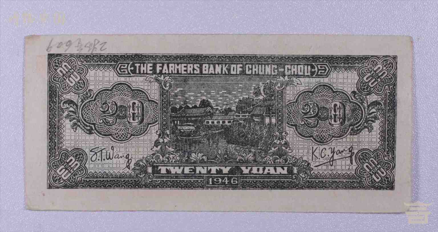 > 中华民国三十五年中州农民银行贰拾圆纸币