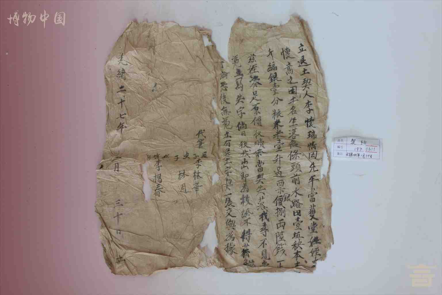 > 清代李怀瑞纸质契约