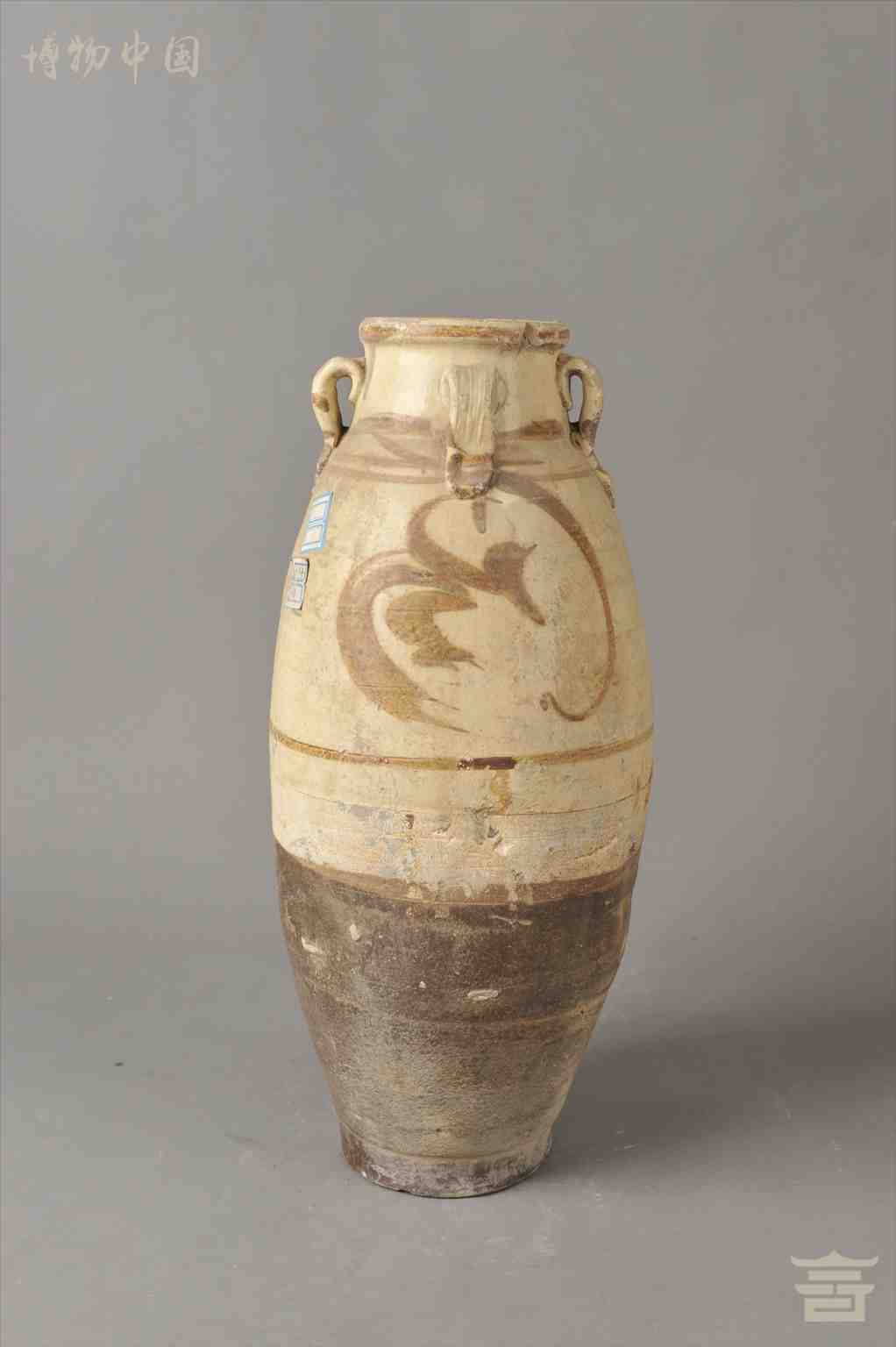 > 元白釉褐彩四系瓶
