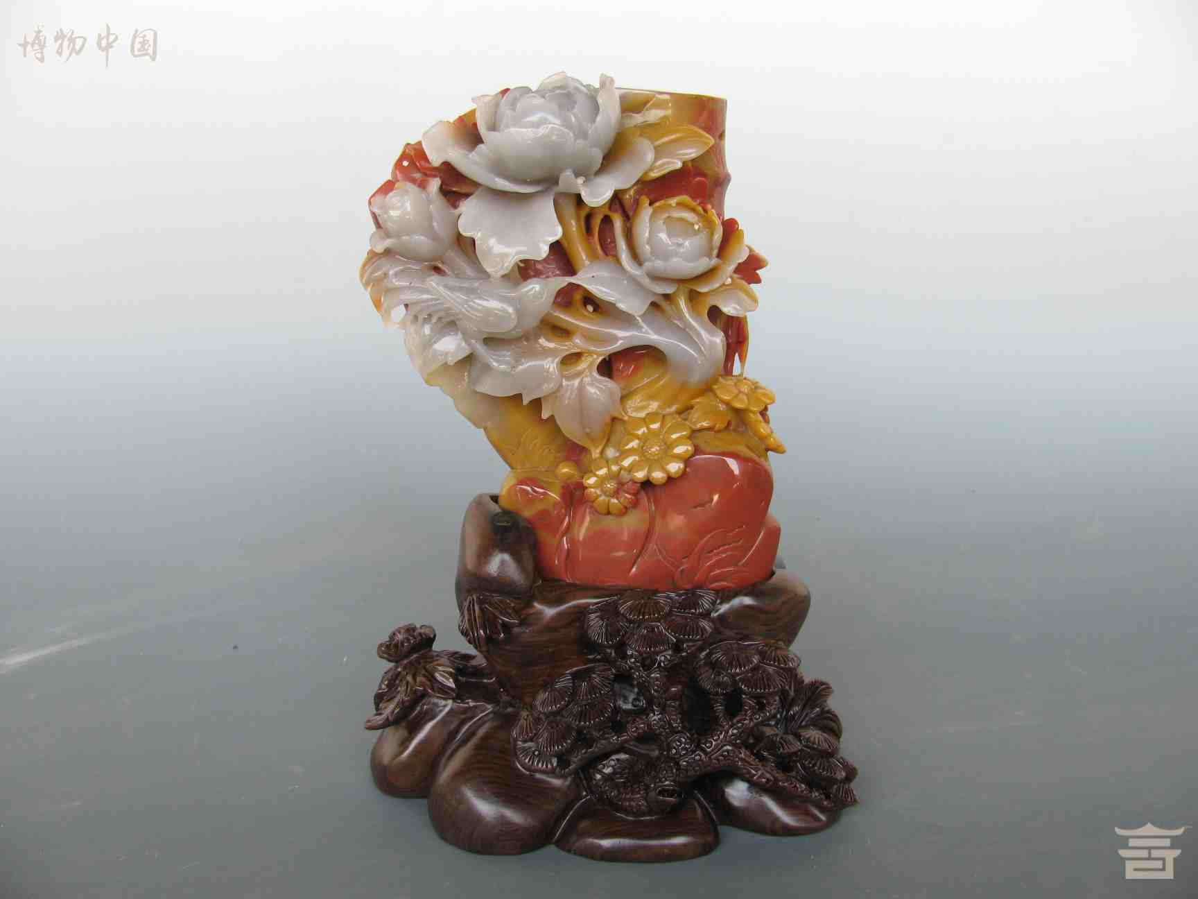 > 中华人民共和国牡丹纹玉笔筒