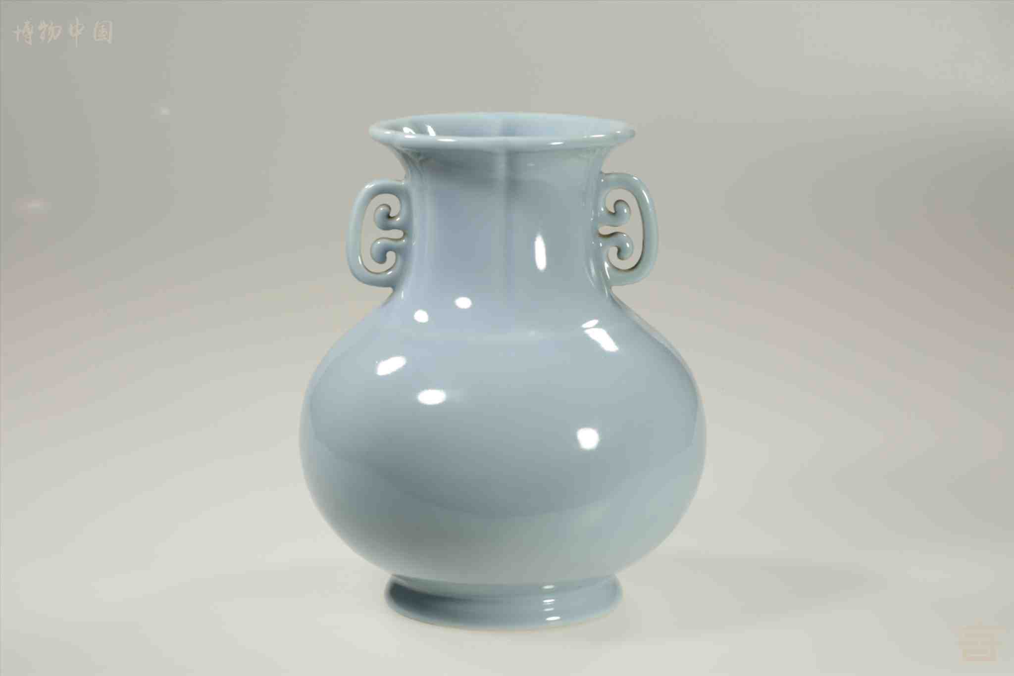 清青釉双耳葵口瓷瓶