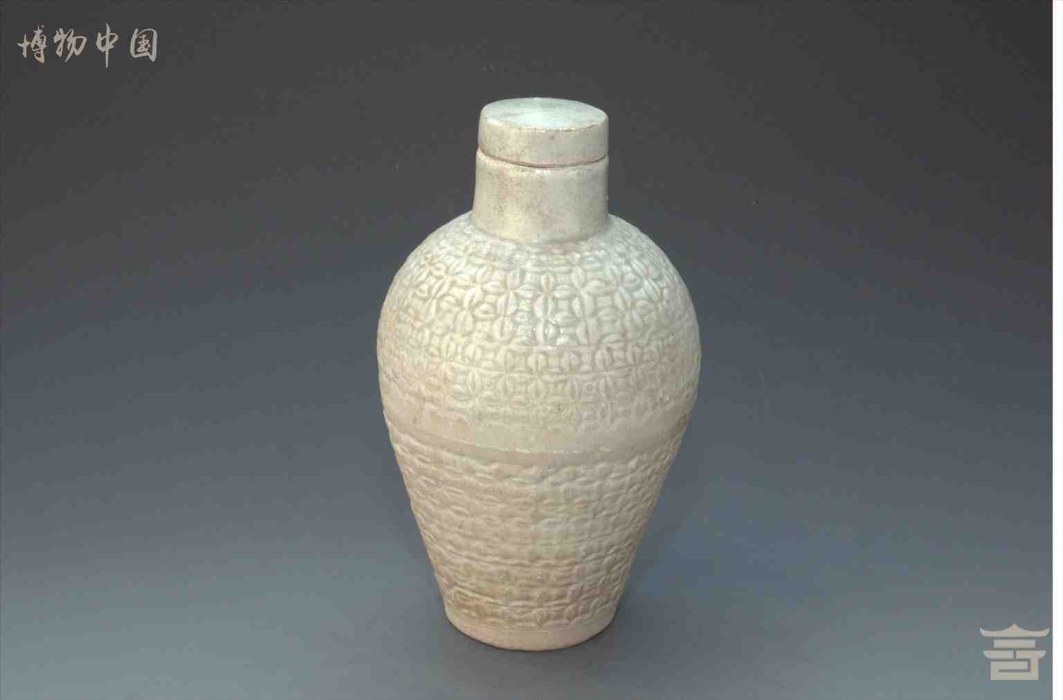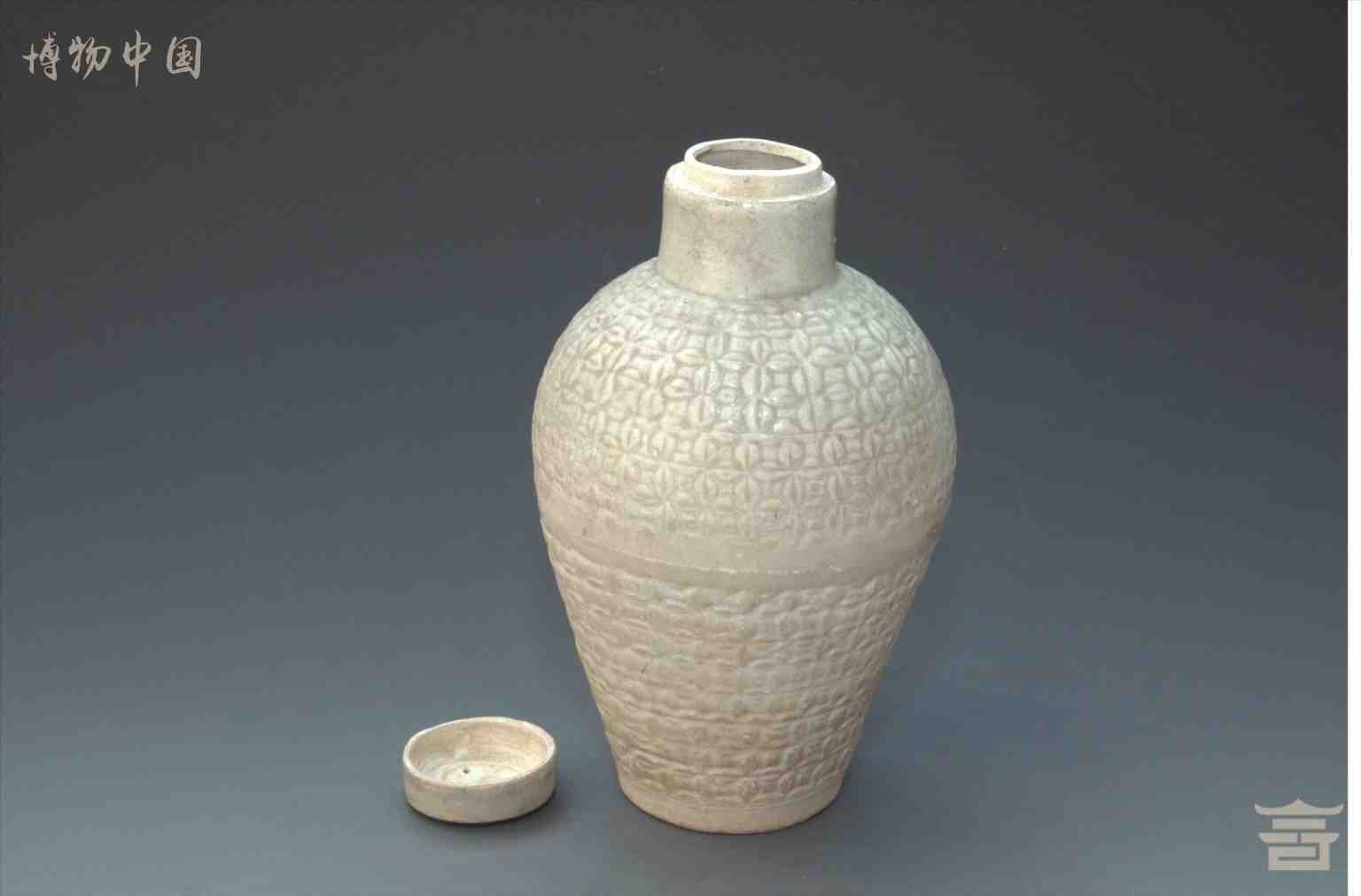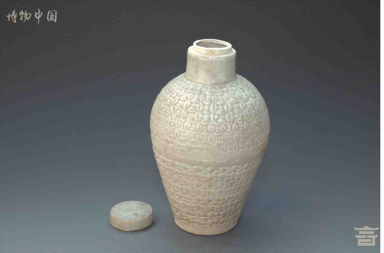 > 宋景德镇窑青白釉印钱锦纹带盖梅瓶