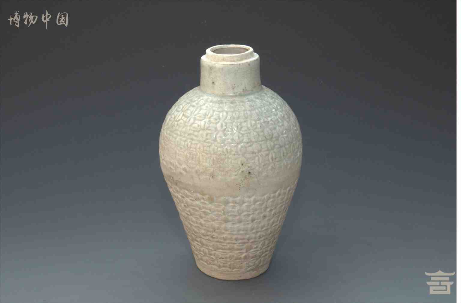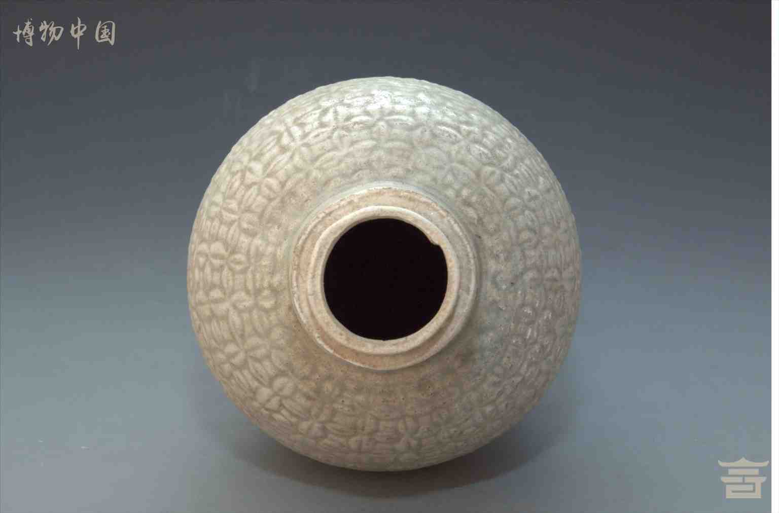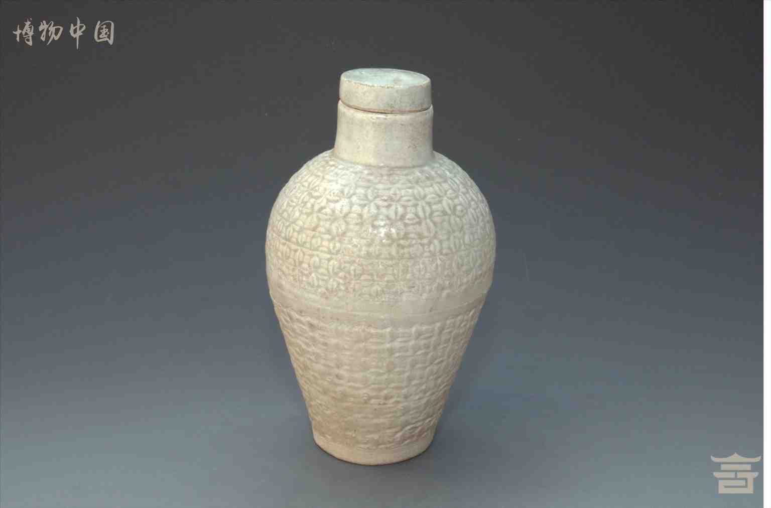 > 宋景德镇窑青白釉印钱锦纹带盖梅瓶