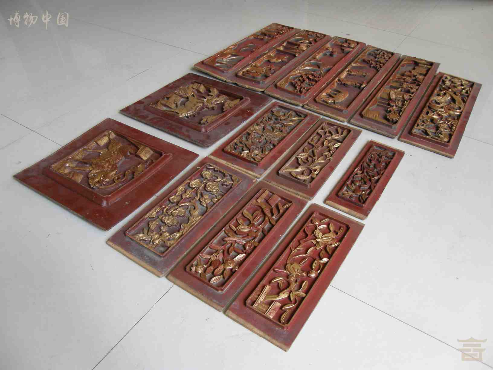 > 民国浮雕花卉瑞兽人物故事纹木板
