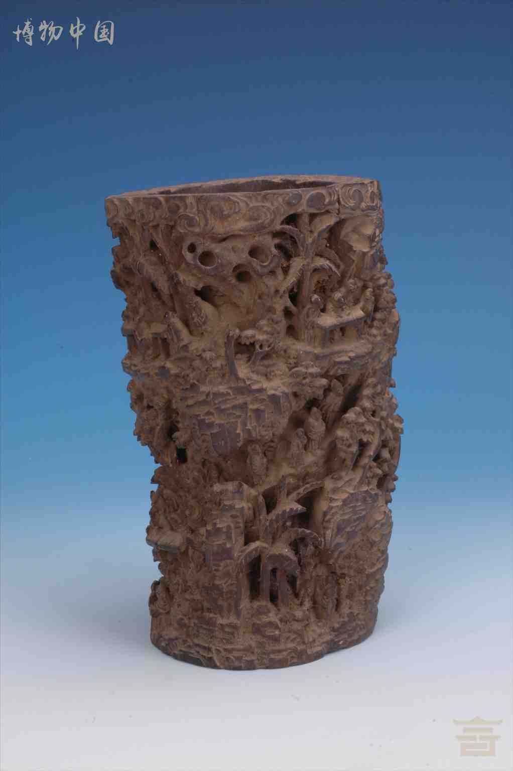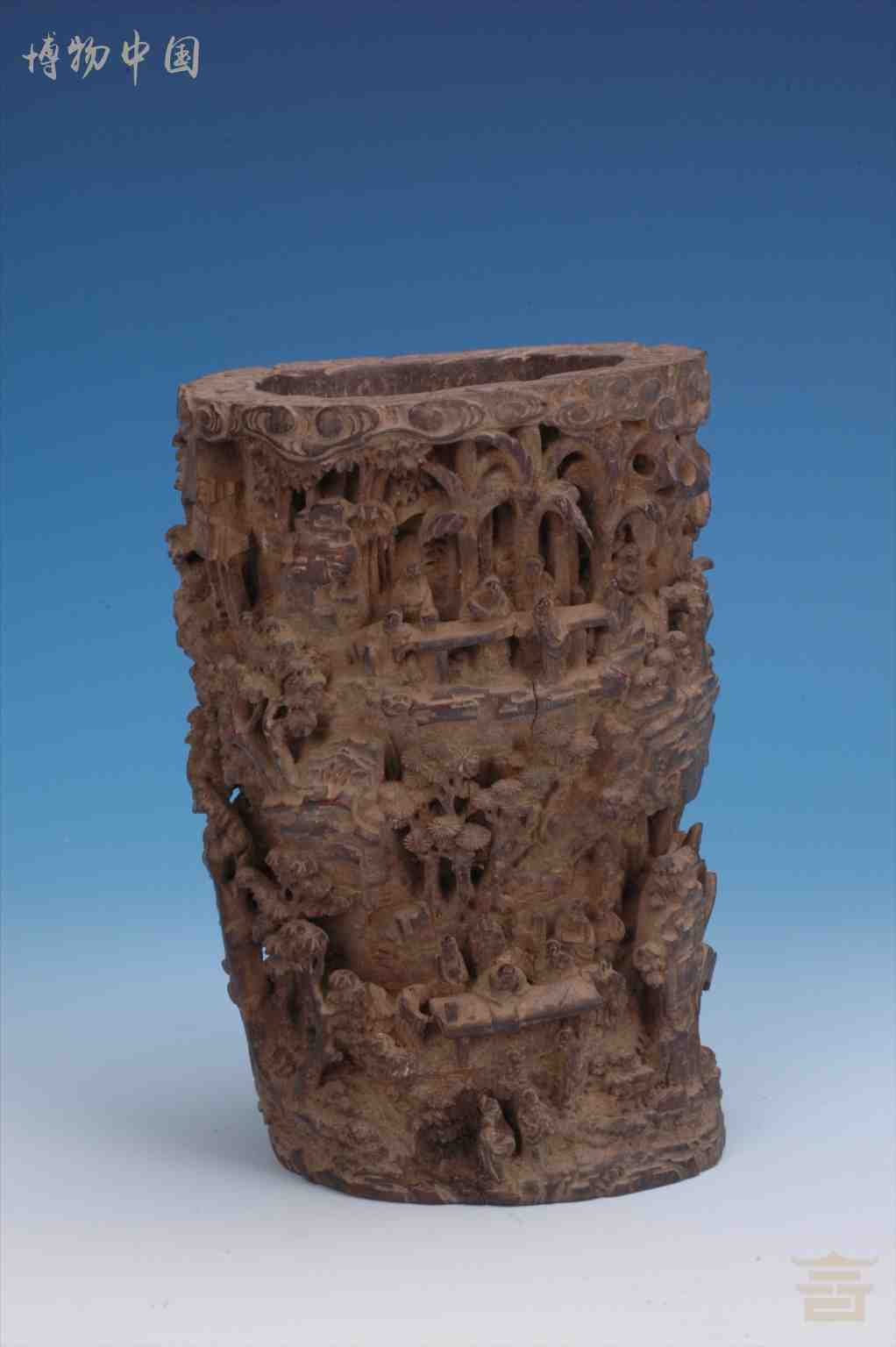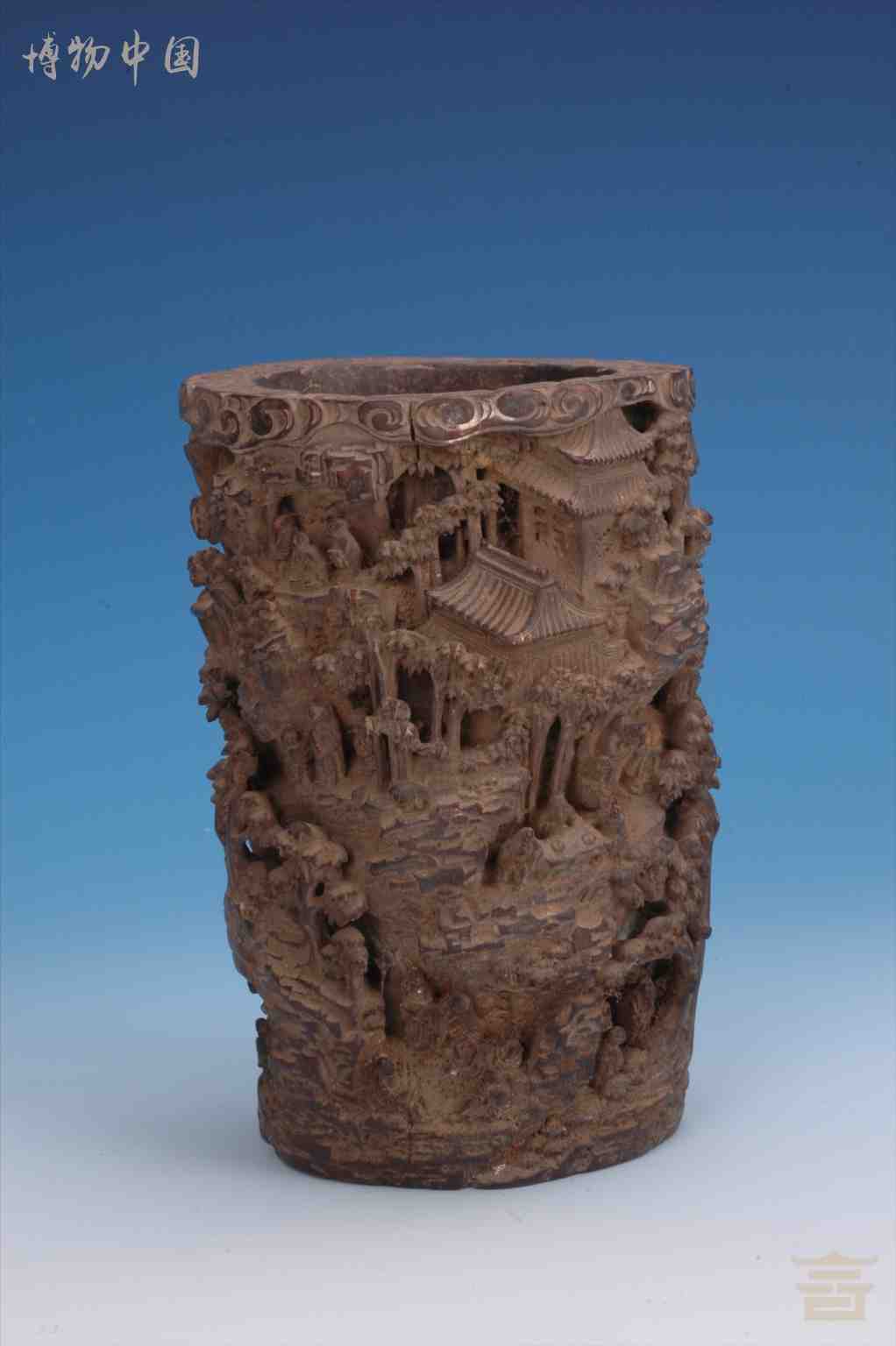 清镂雕人物楼阁竹笔筒