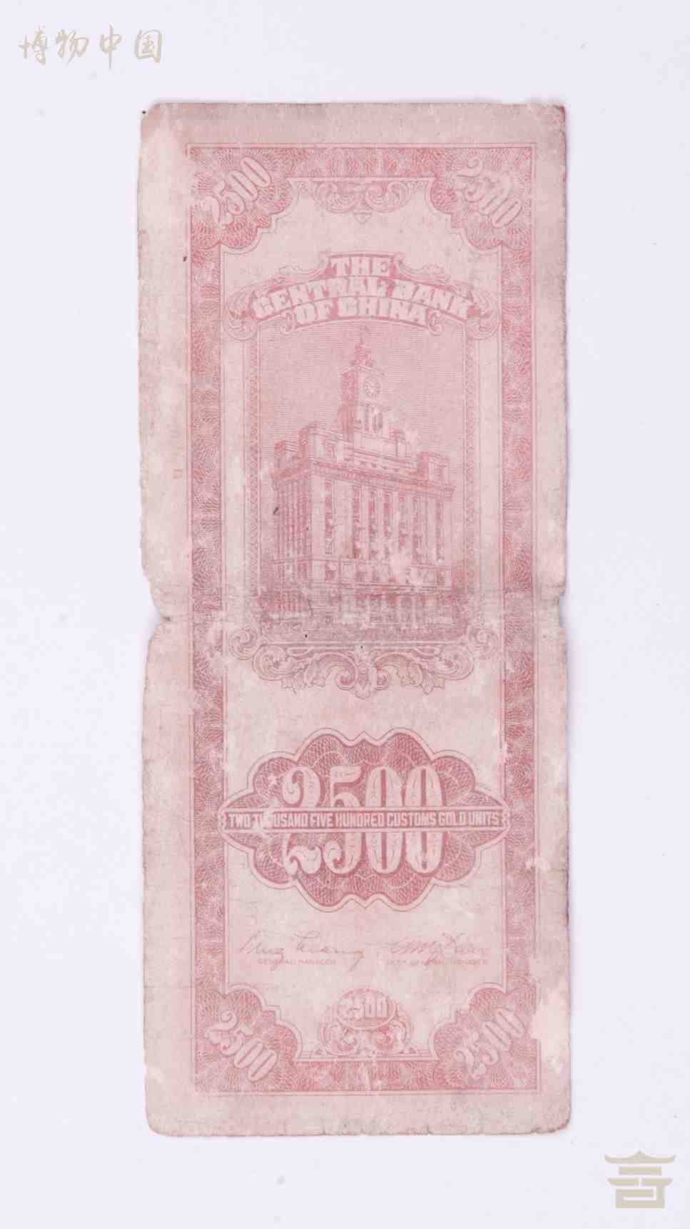 > 中华民国三十七年中央银行发行的贰仟伍佰圆关金劵