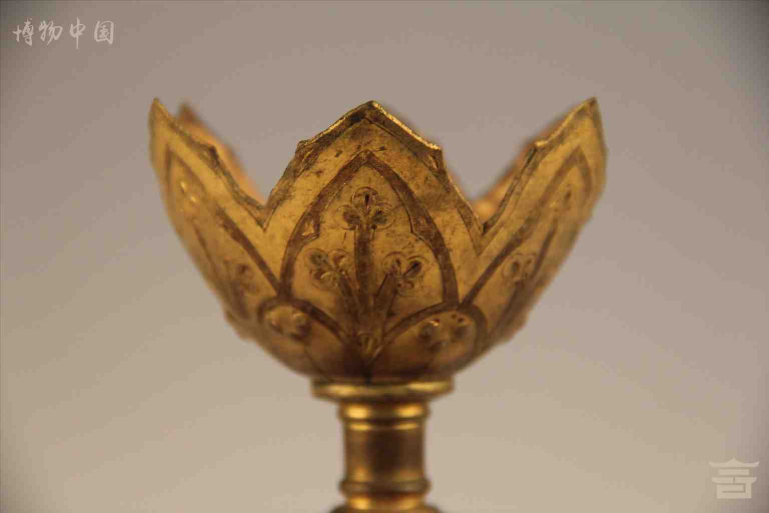 > 十九世纪 铜鎏金錾刻花卉纹圣爵座