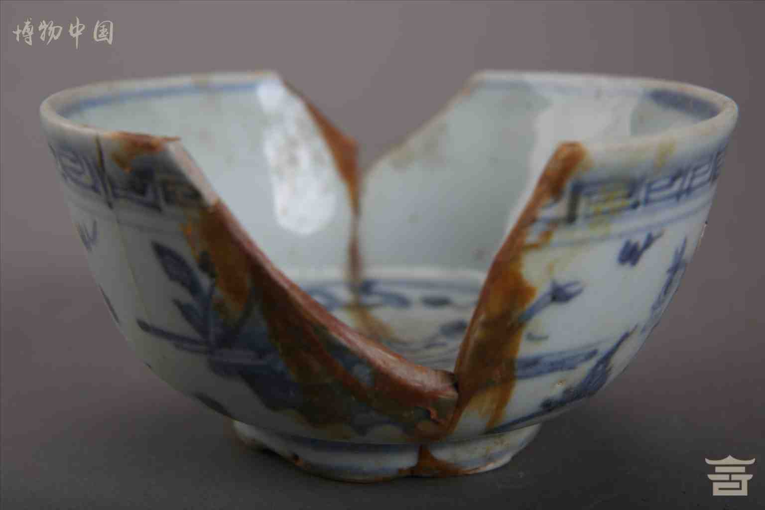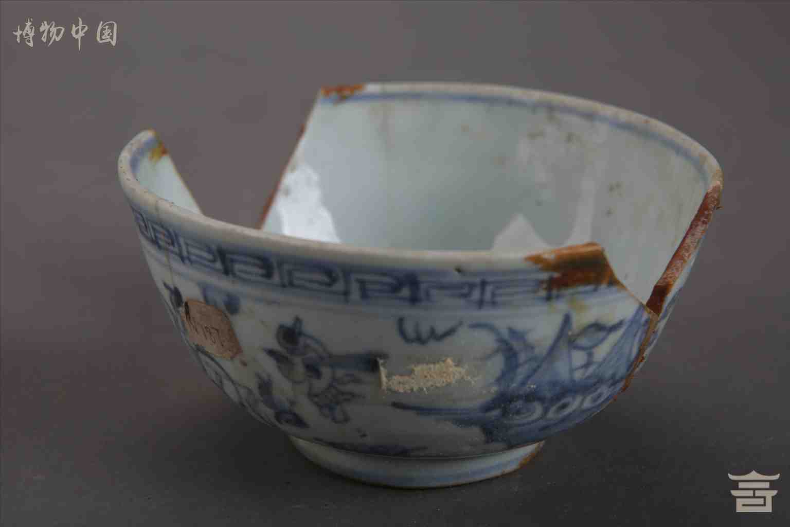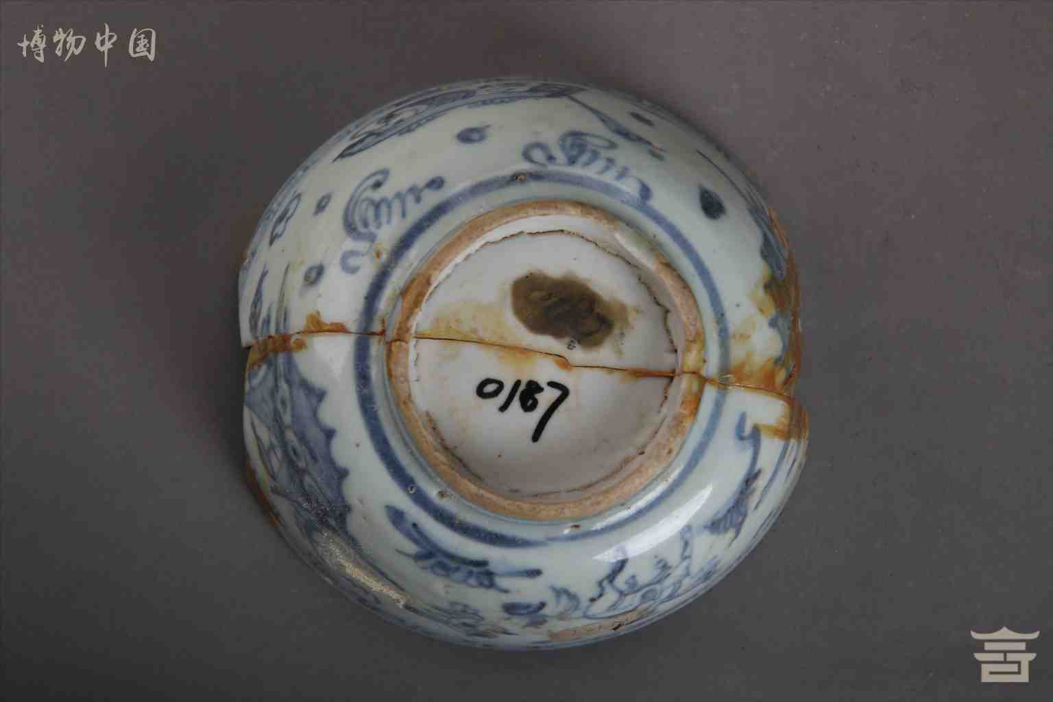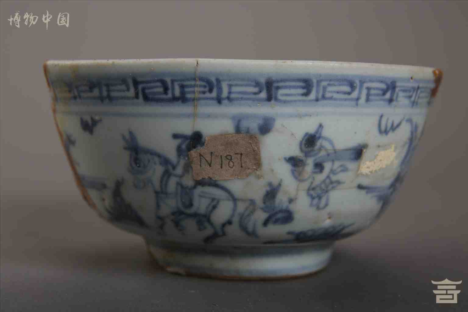 > 明青花人物鱼澡瓷碗