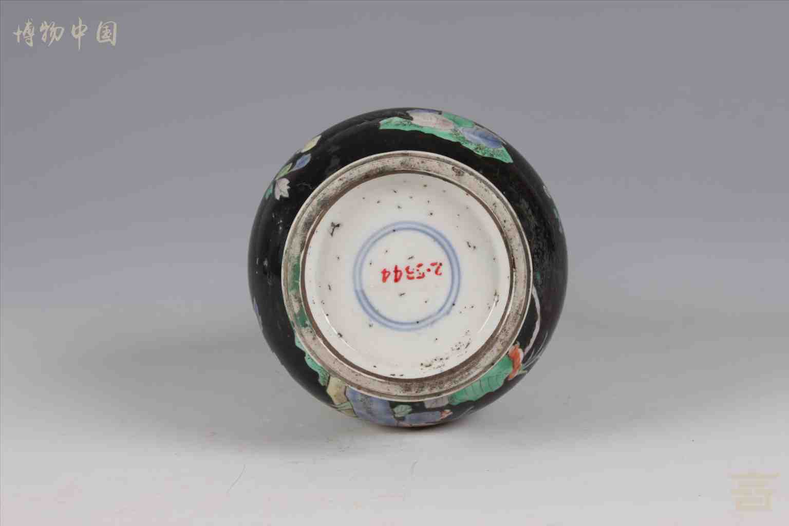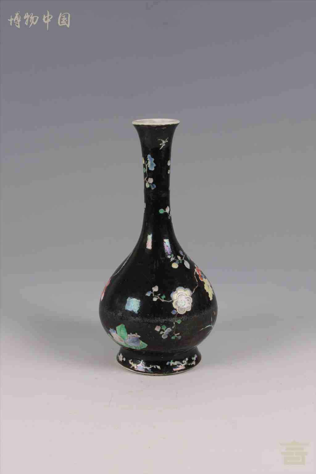 > 清墨地五彩花鸟纹长颈瓷瓶