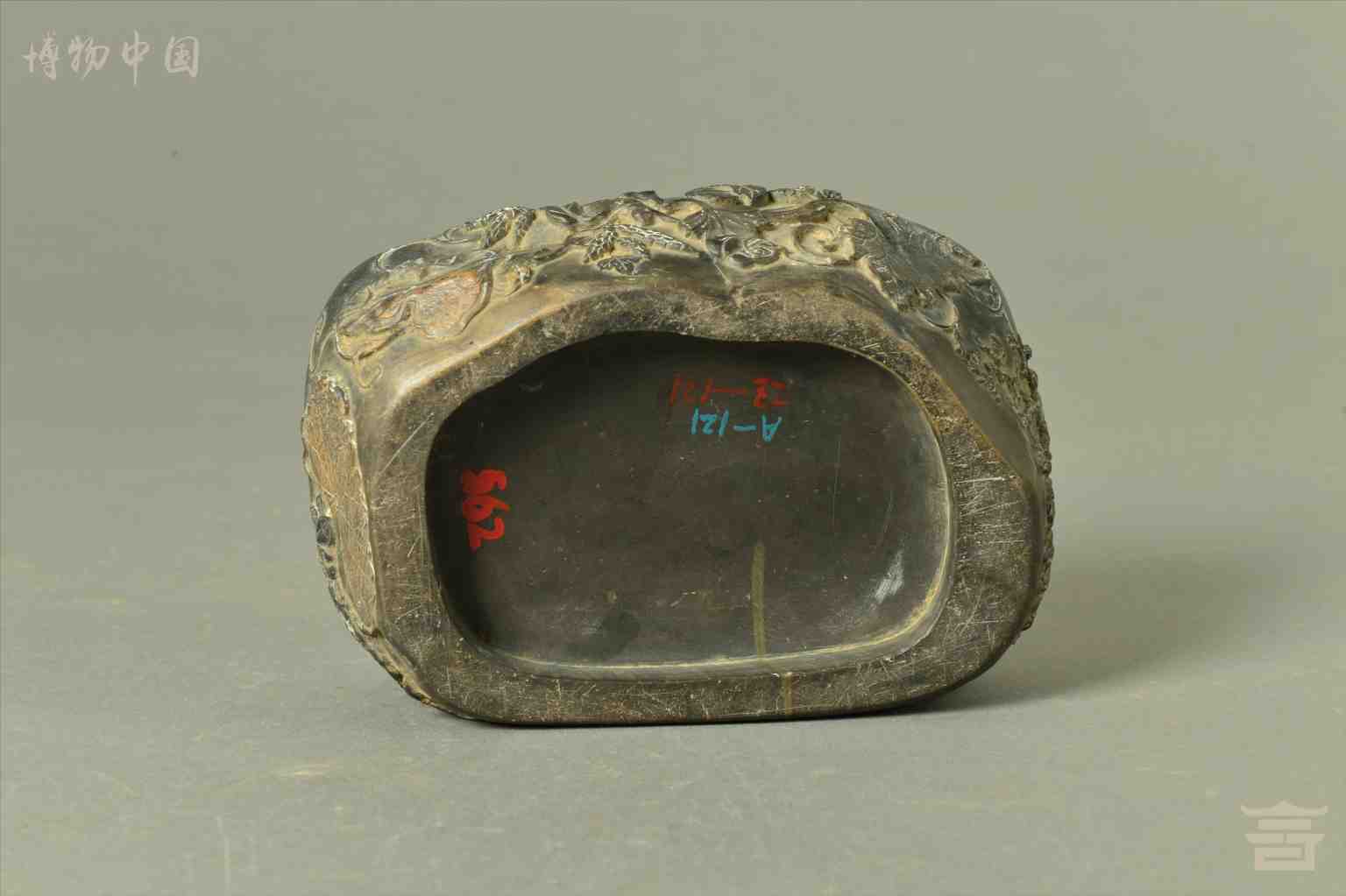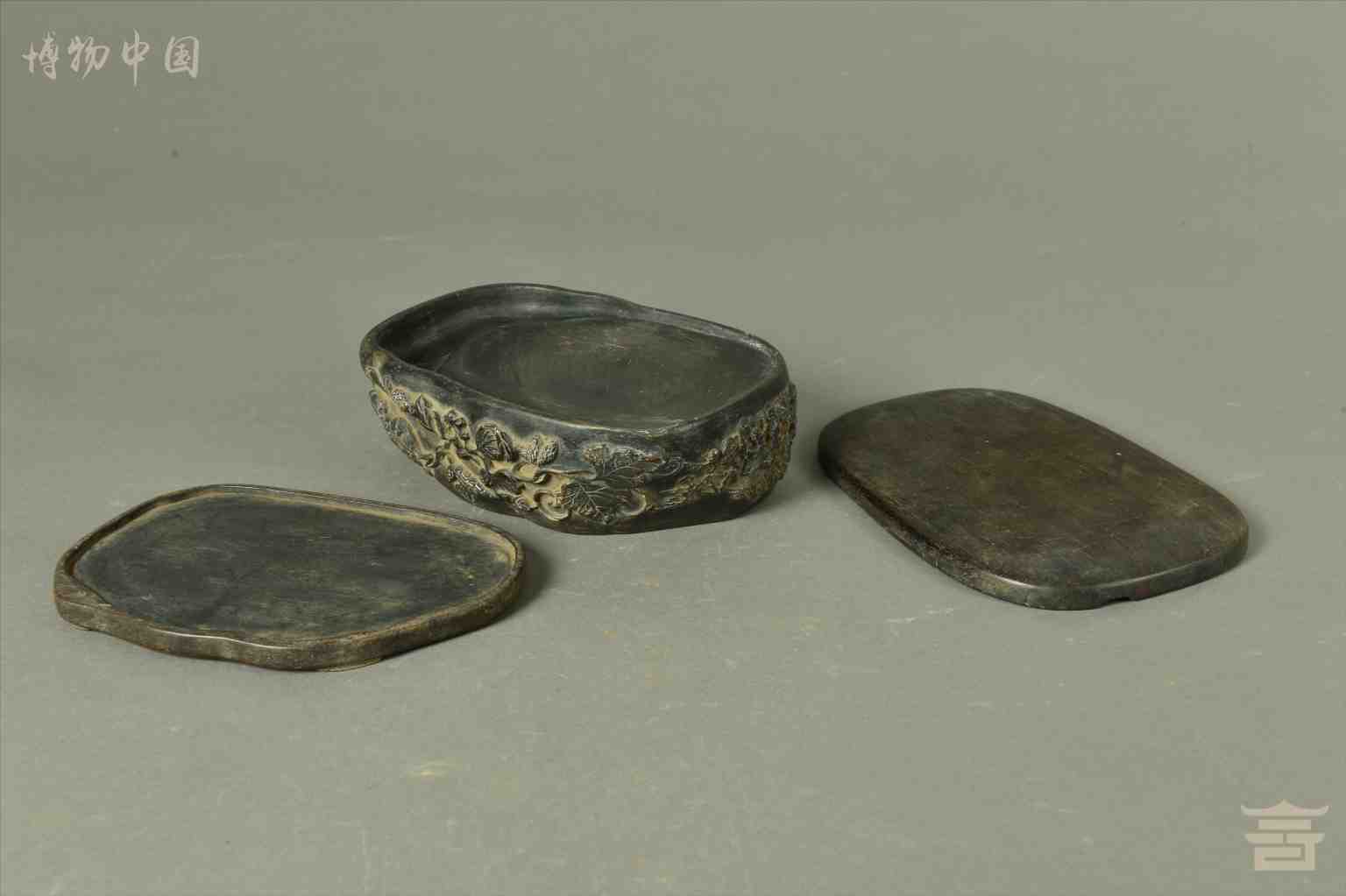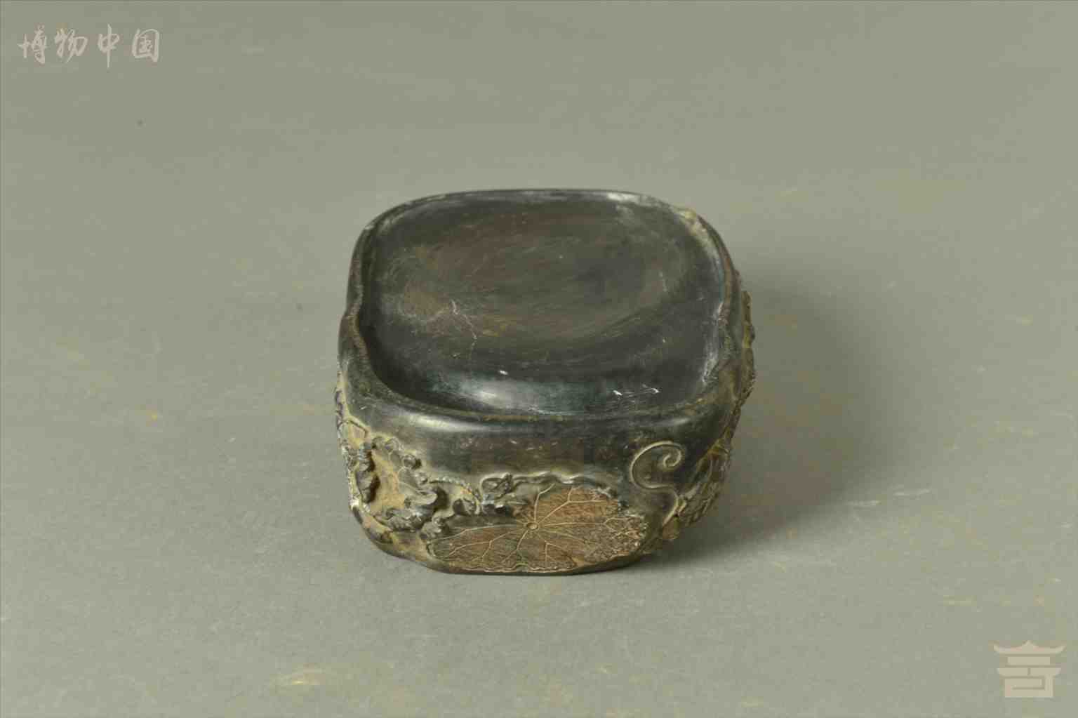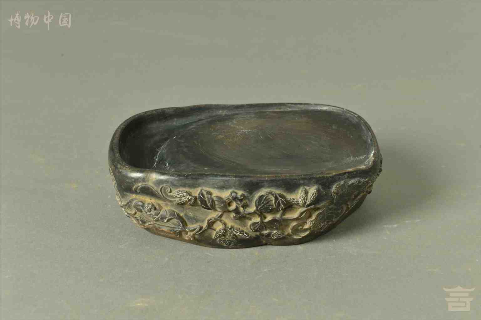 > 清乾隆浮雕花卉纹随形石端砚
