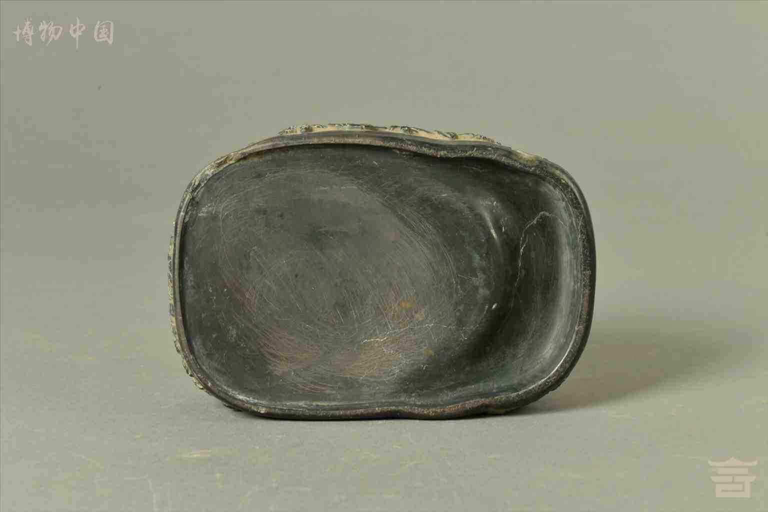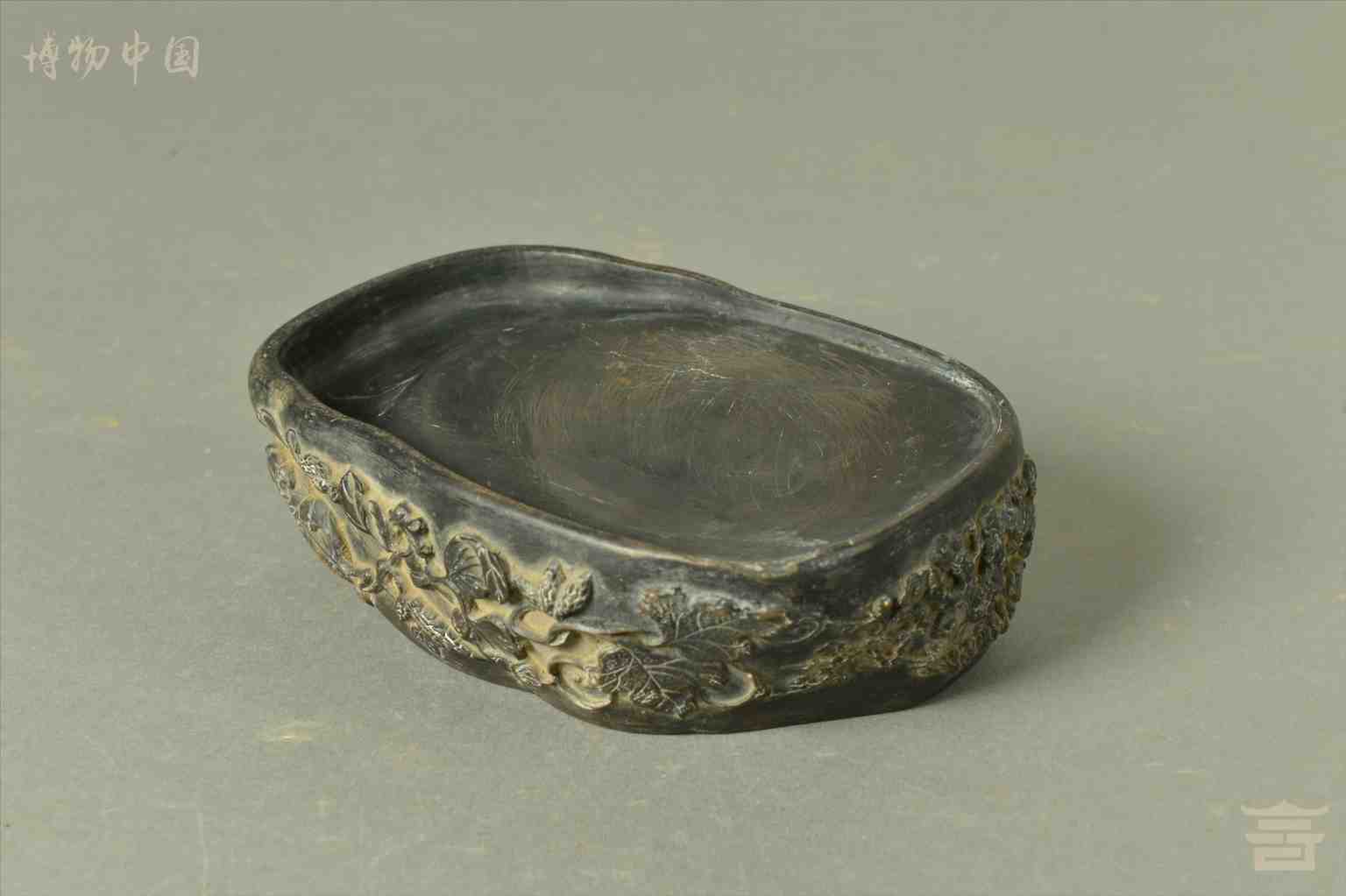 清乾隆浮雕花卉纹随形石端砚