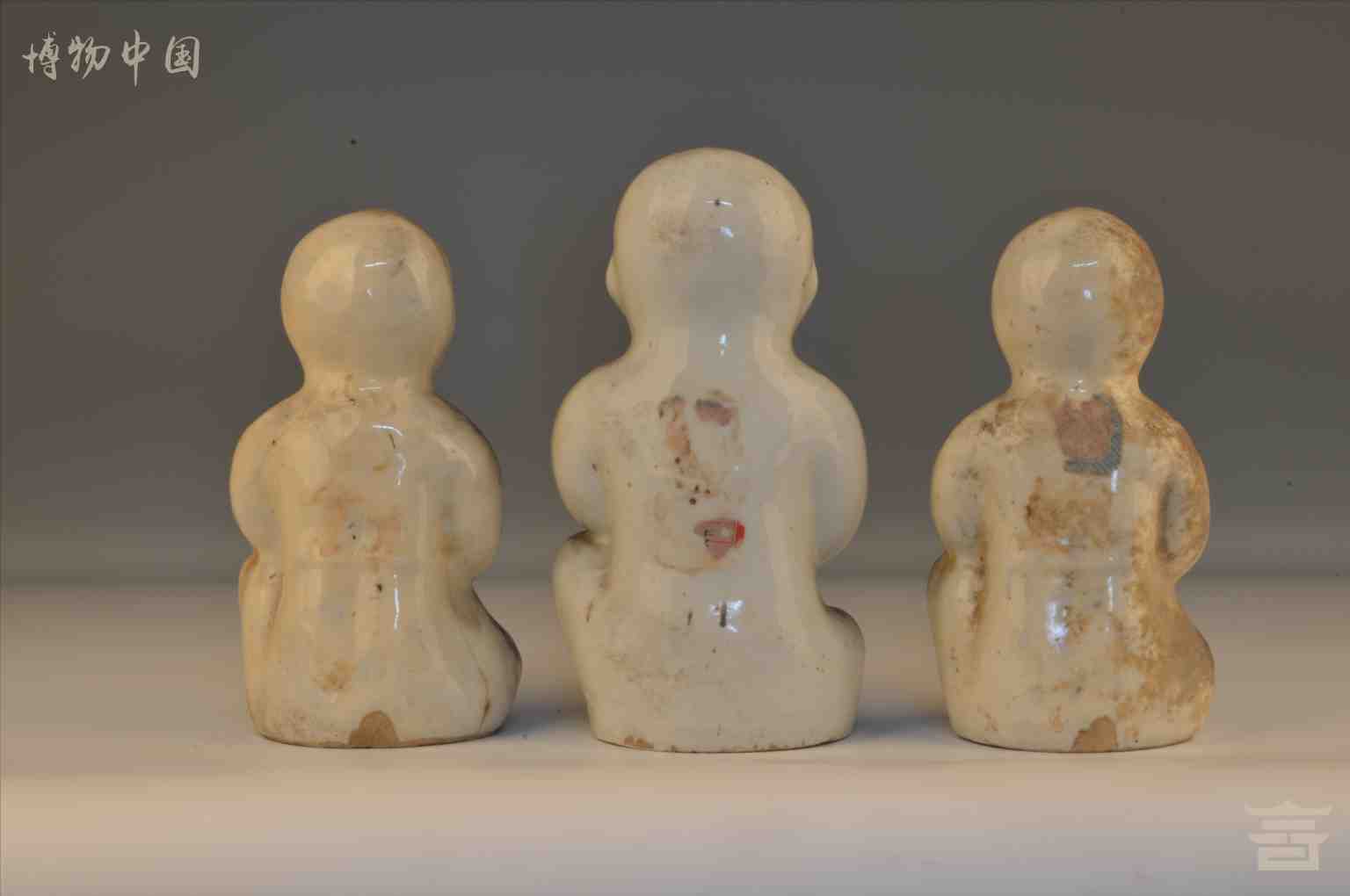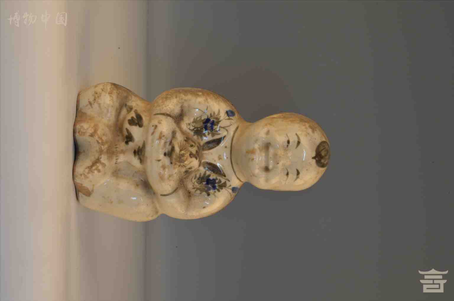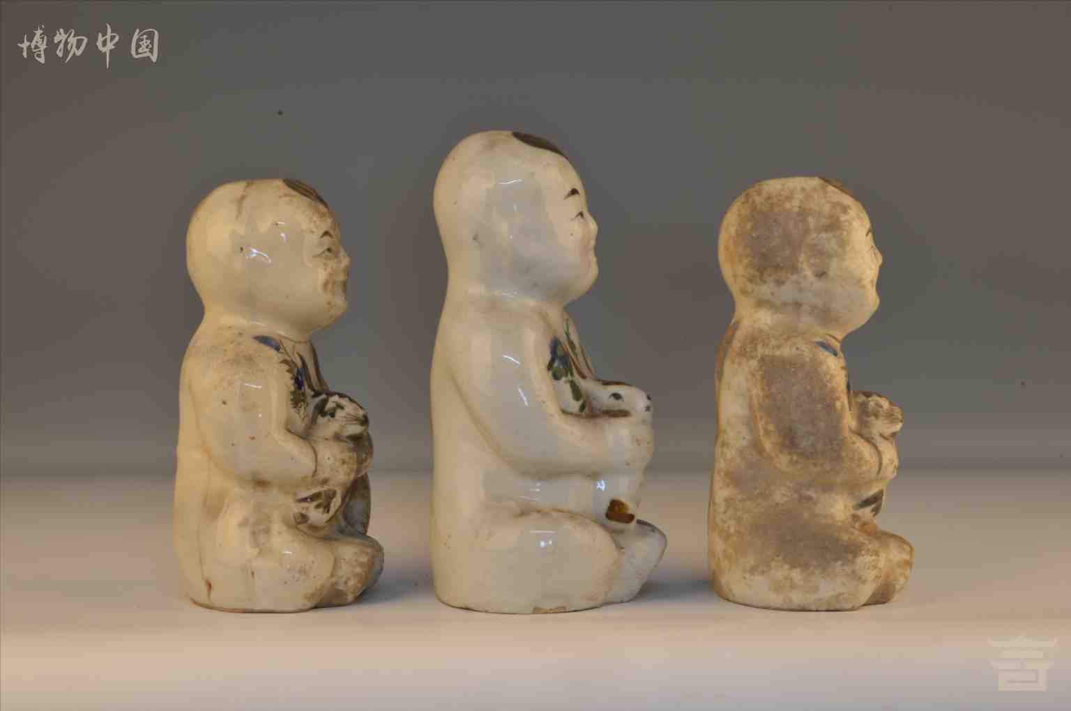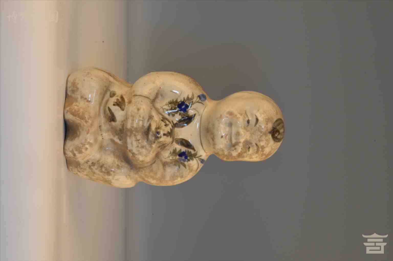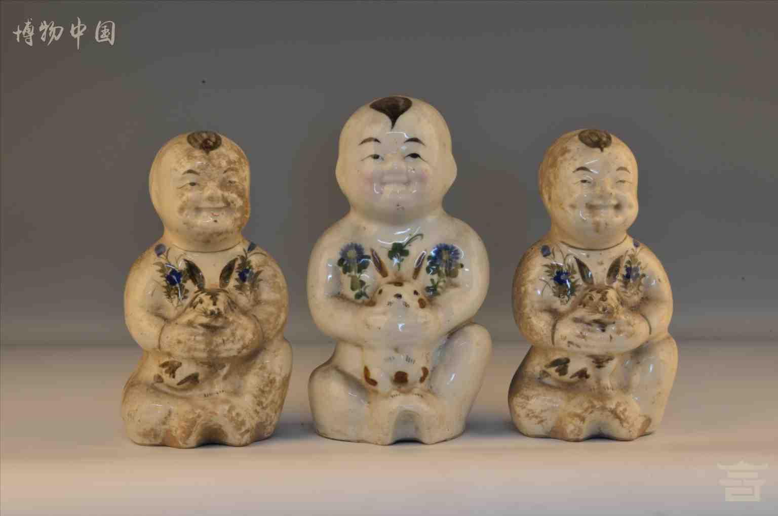 > 民国礼陵窑釉下彩抱兔瓷娃