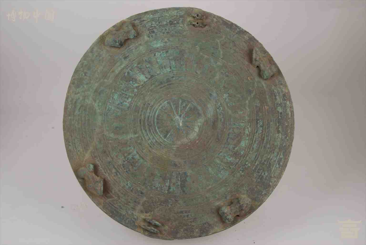 东汉双鱼双骑士饰变形羽人纹铜鼓
