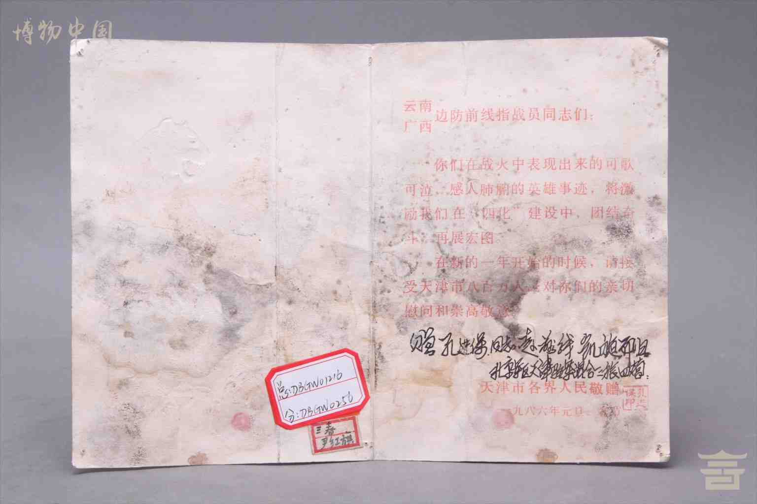 > 1986年北京军区天津驻军混合三旅四营赠孔进保同志赴前线凯旋而归贺卡