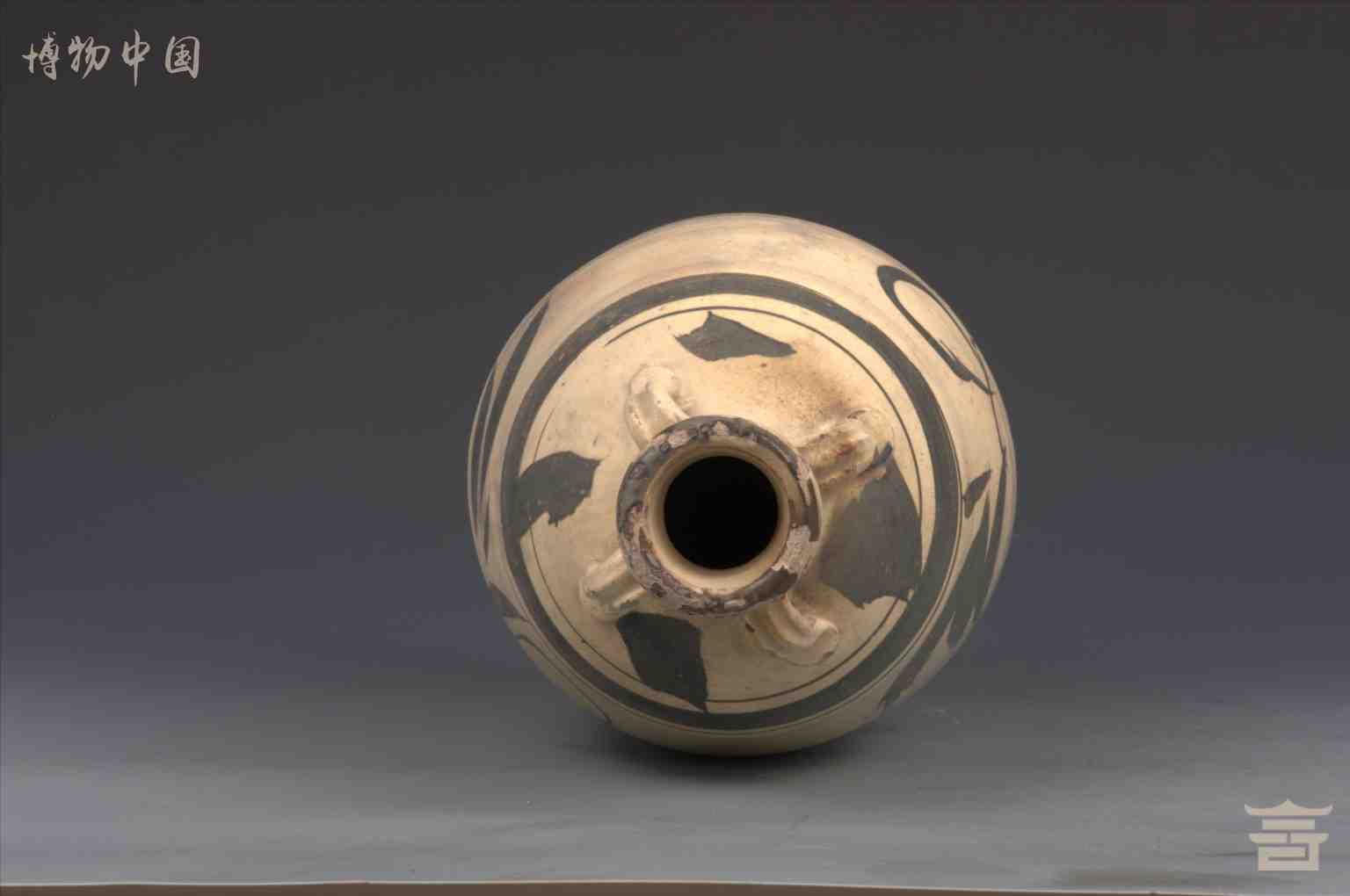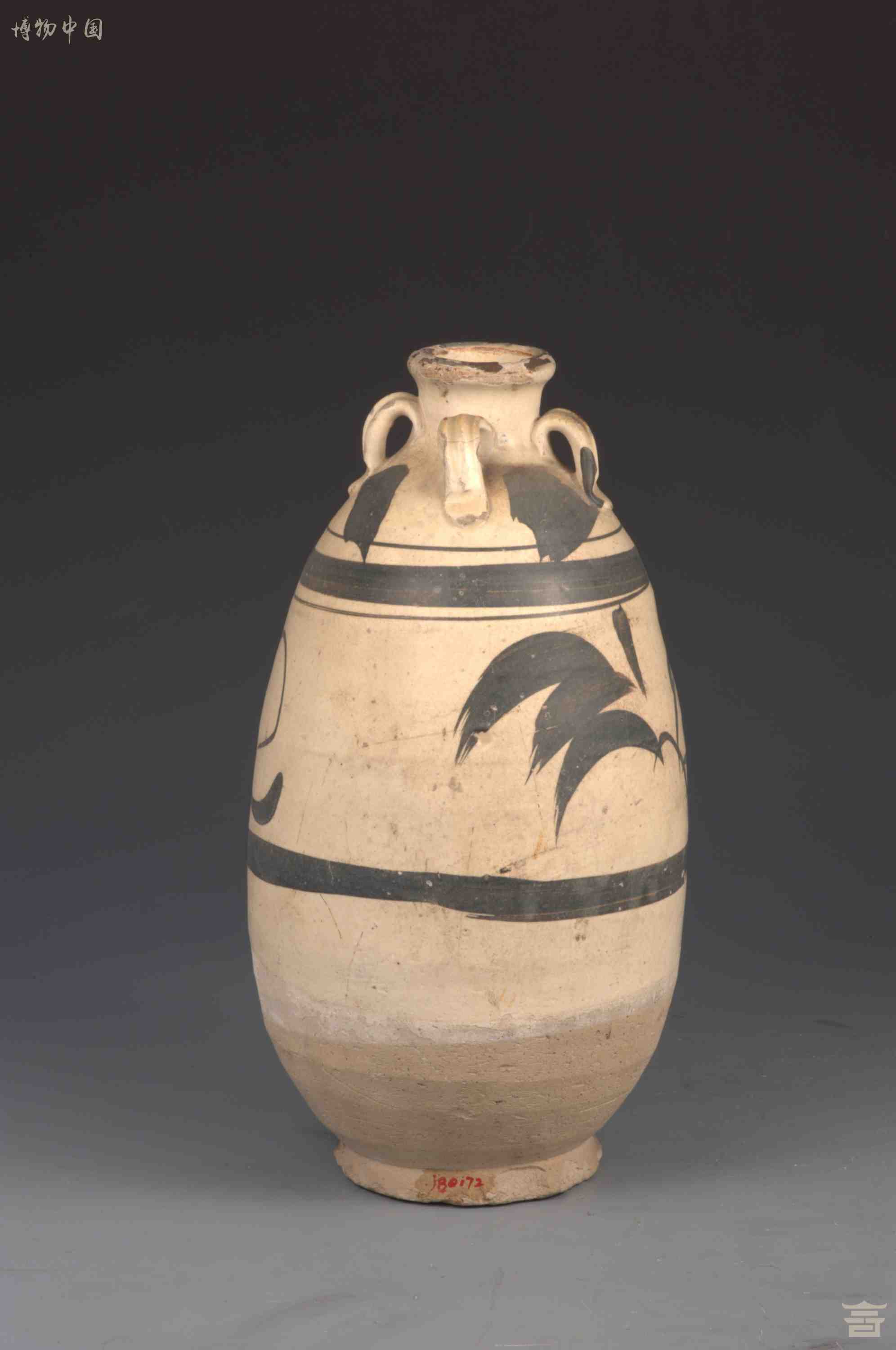 元白釉黑彩小口四系瓶
