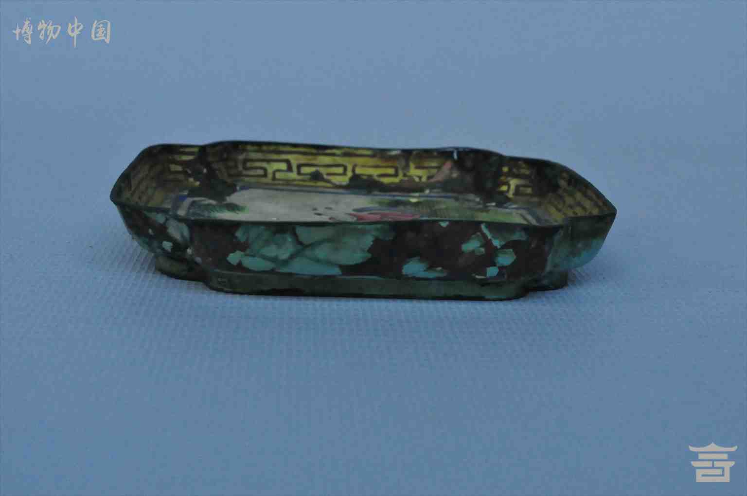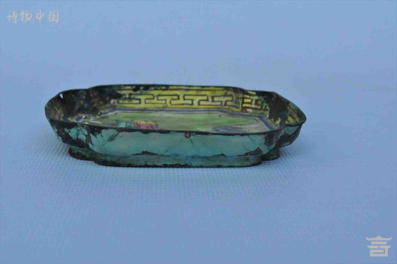 > 清铜胎珐琅五彩人物四方盘
