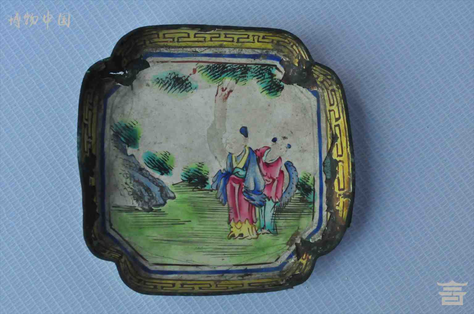 清铜胎珐琅五彩人物四方盘