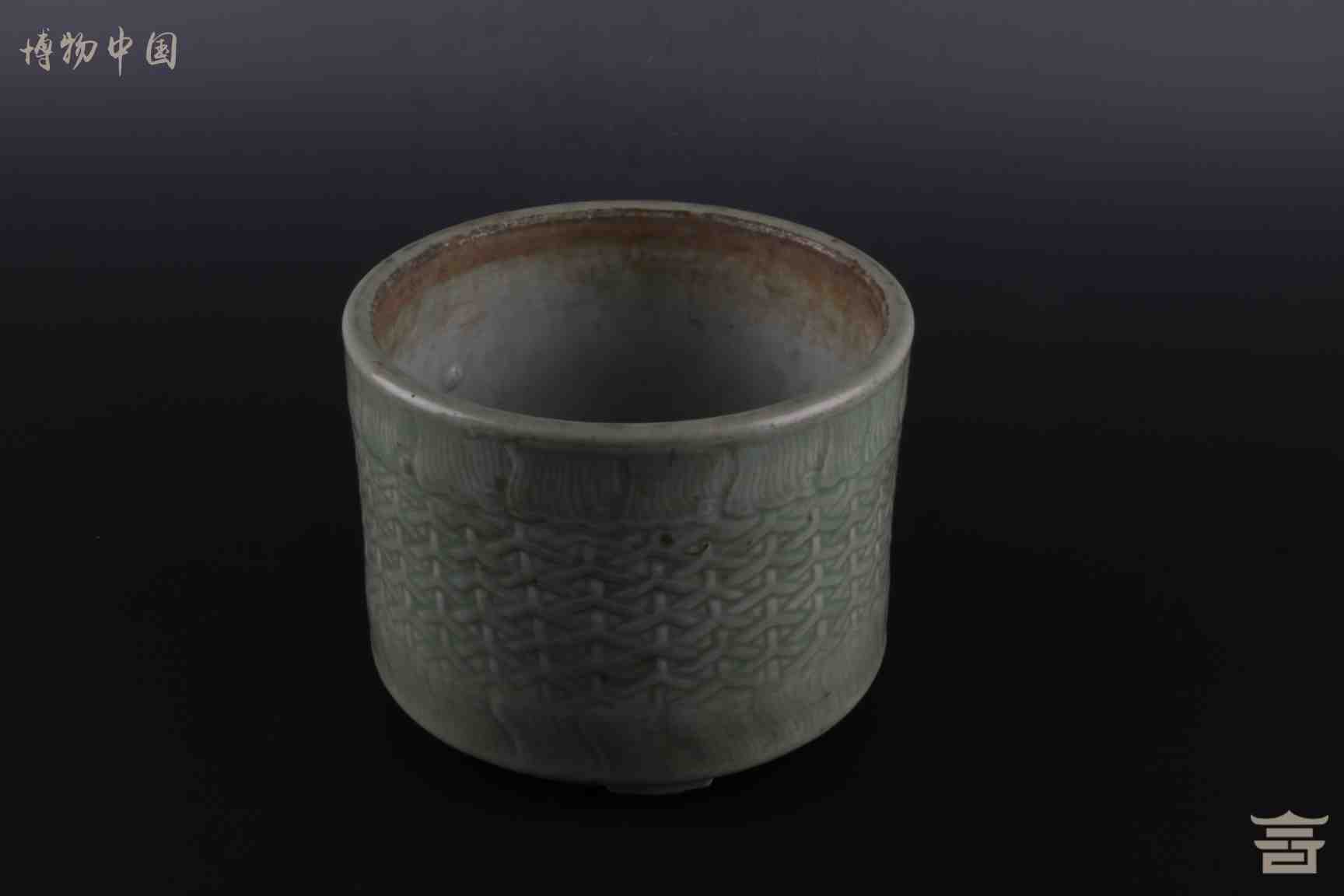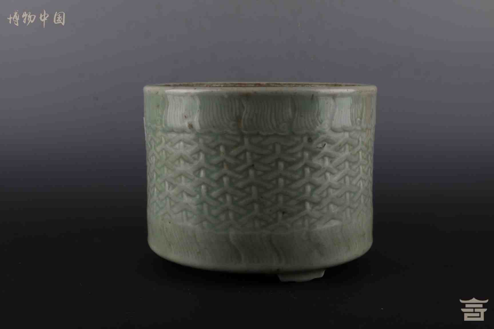 > 清乾隆青釉三足直耳炉