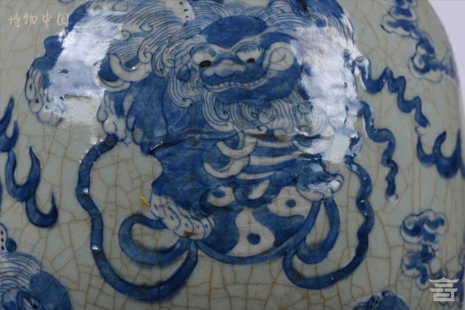 > 清青花云狮纹大瓶
