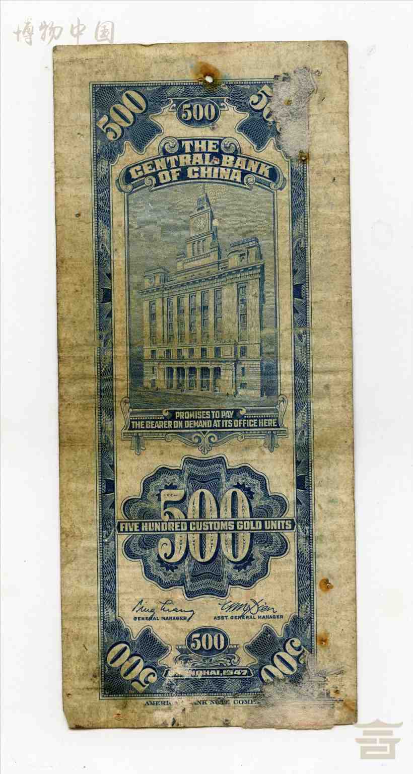 > 1947年中央银行发行的关金伍佰元纸质货币