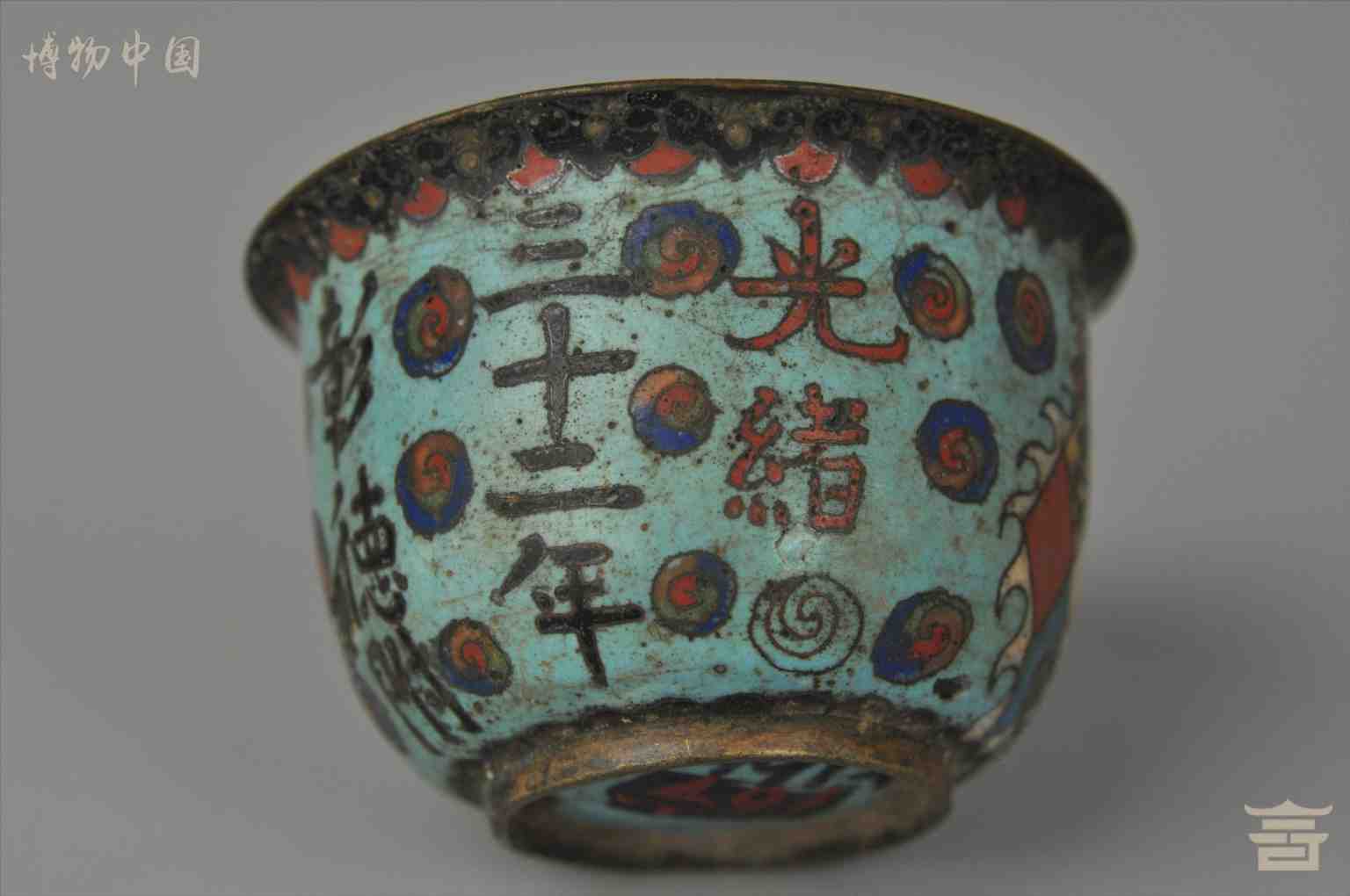 > 清光绪三十二年画珐琅彩铜秋操杯