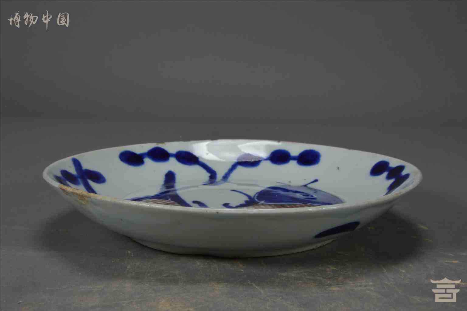 > 民国青花釉里红鱼纹盘