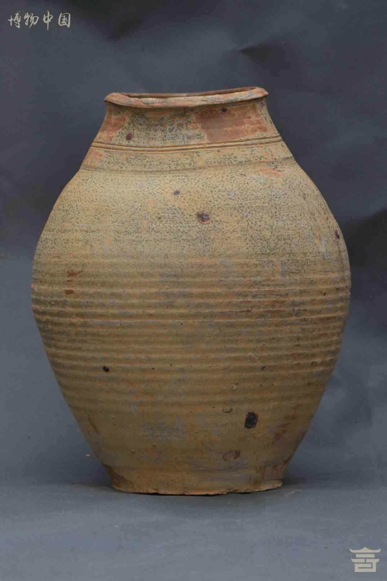 > 清李攀麟夫妇合葬墓出土釉面平行线纹鼓腹陶罐