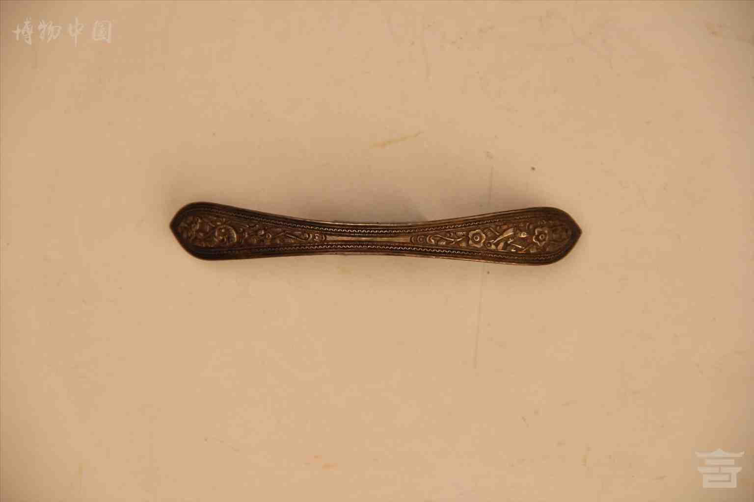 > 民国 "金億和"铭錾刻花鸟纹梭形银扁簪