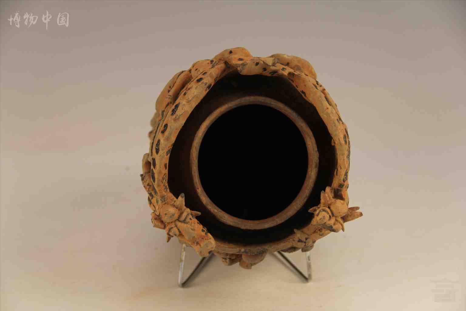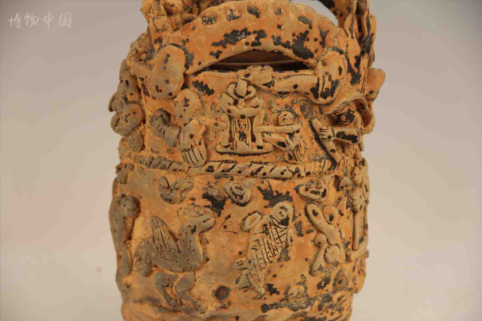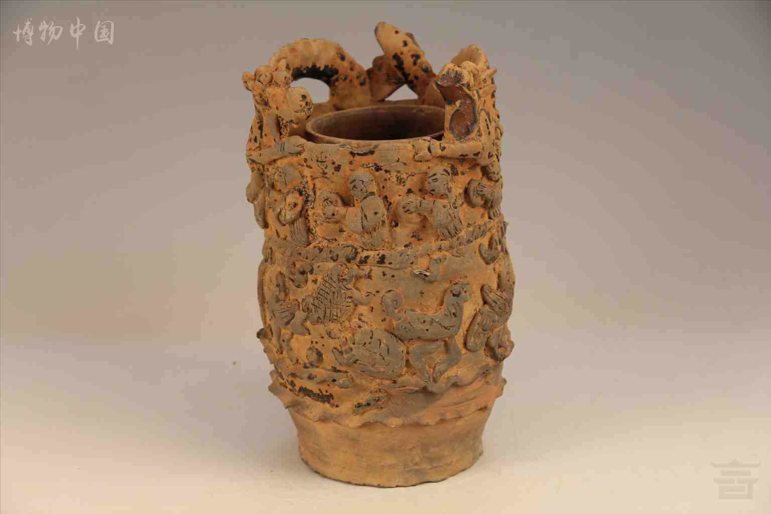 > 宋 酱釉堆塑人龙纹"天堂"陶魂瓶(残)