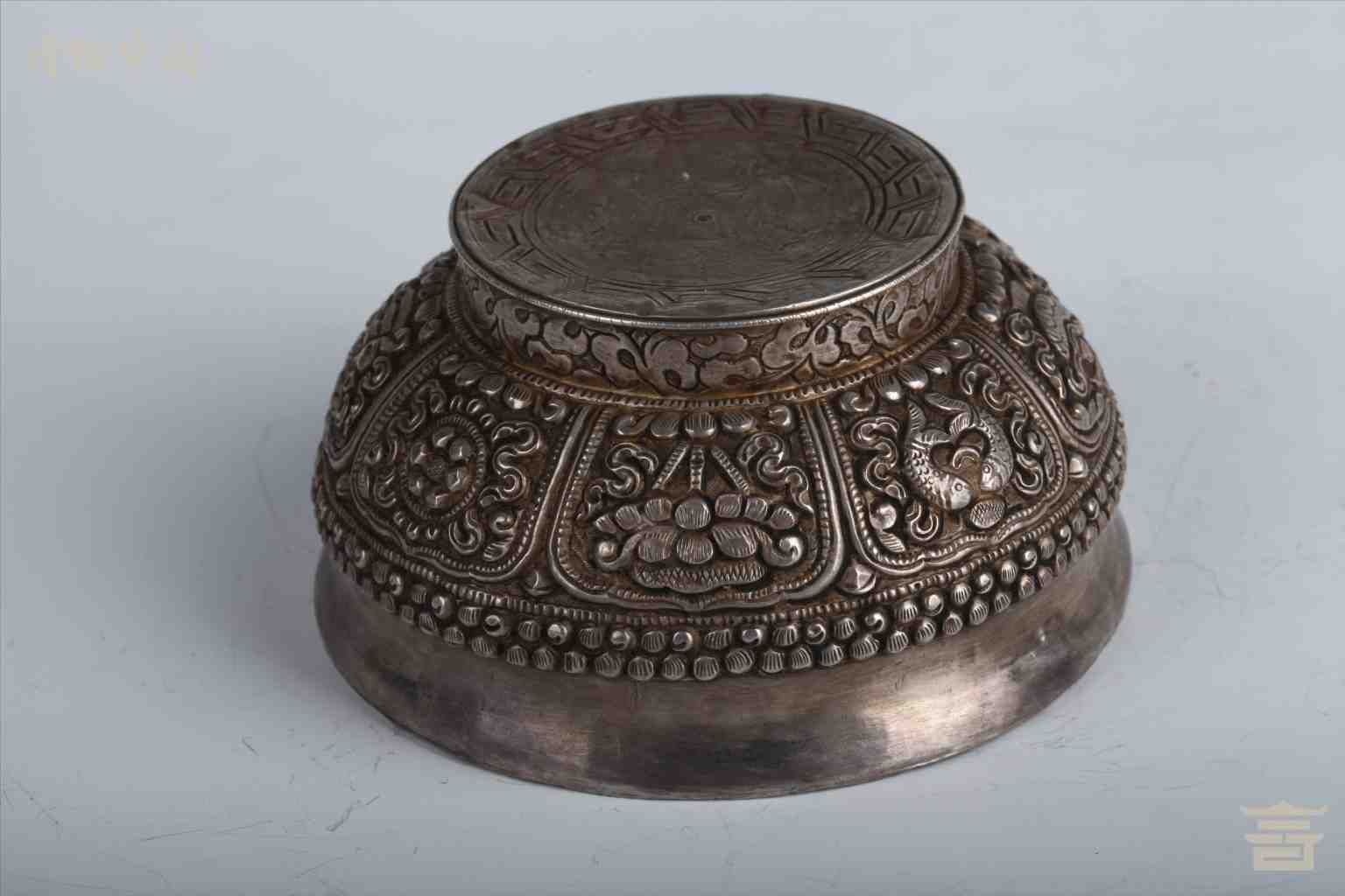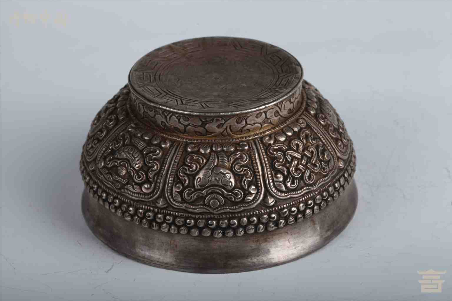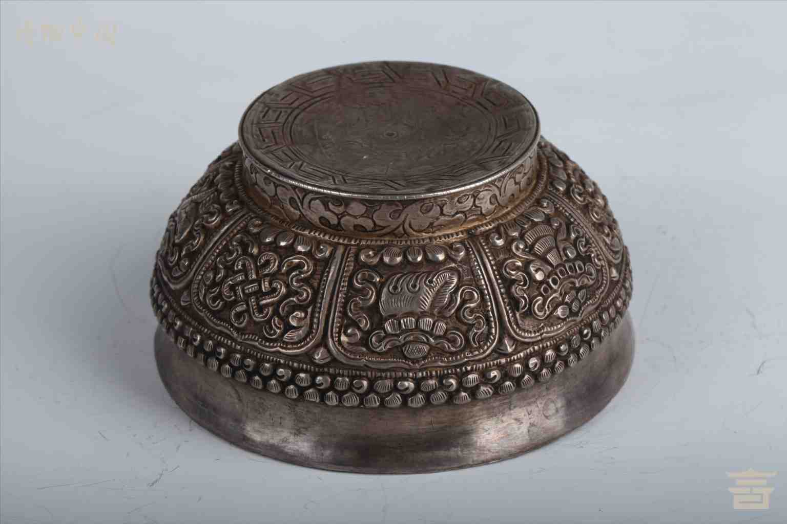 > 清包银錾八宝根木碗
