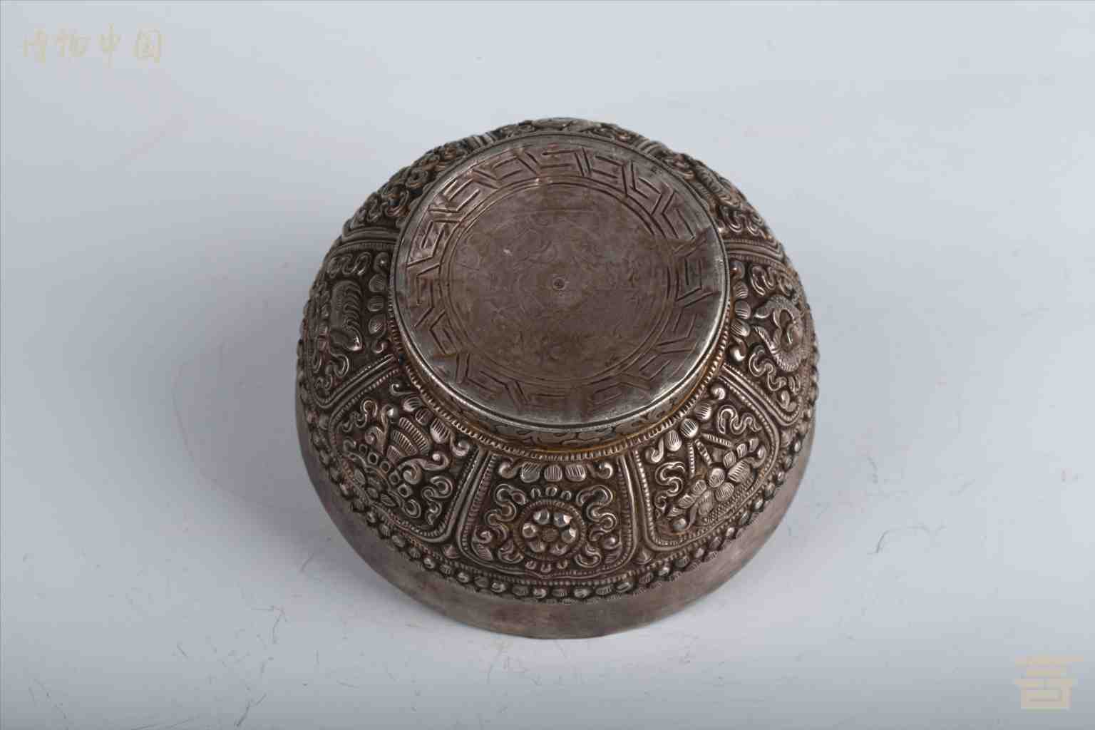 清包银錾八宝根木碗