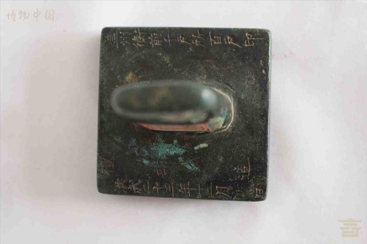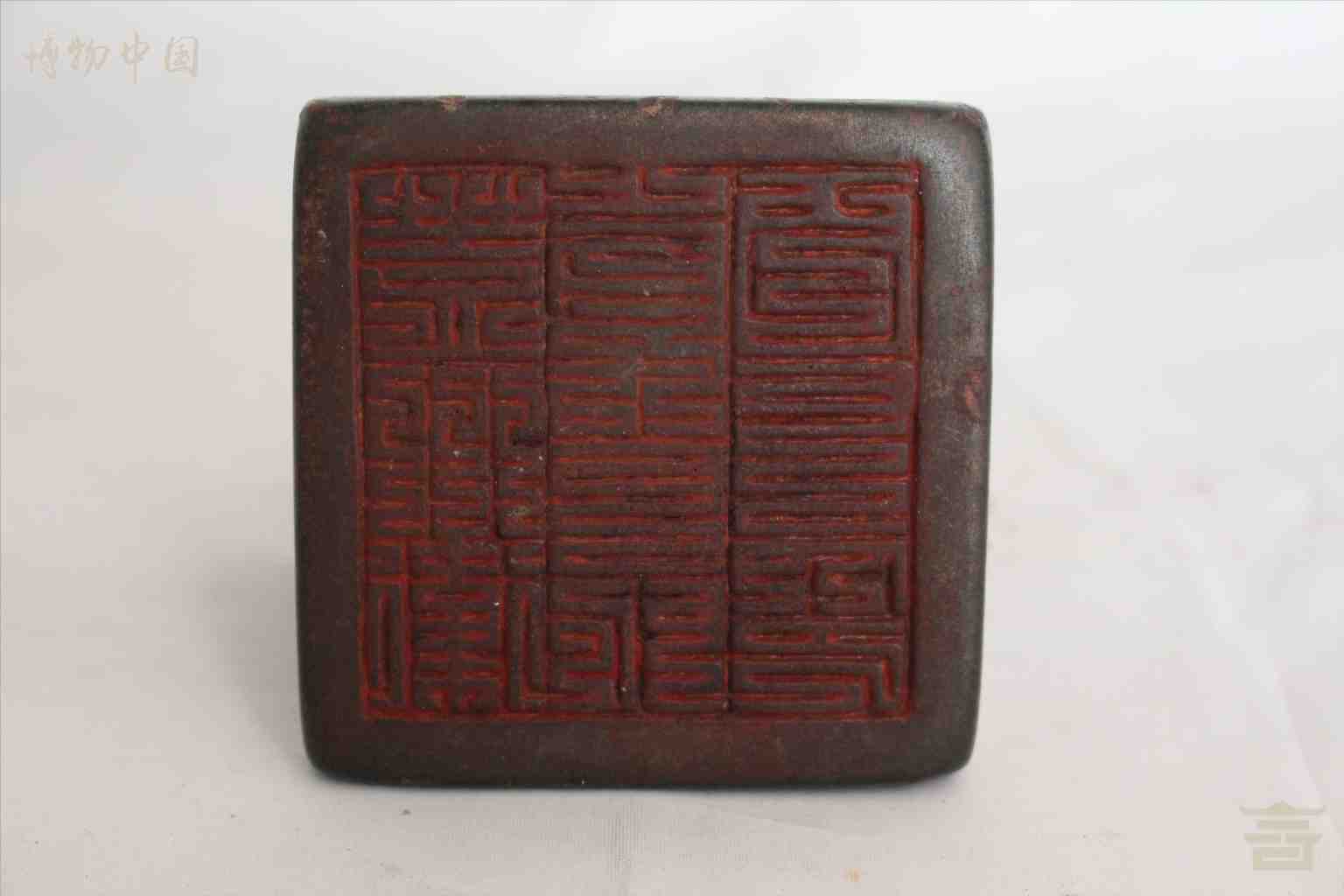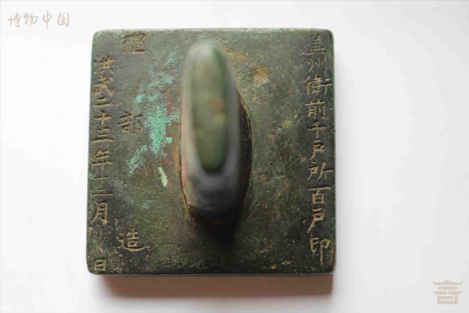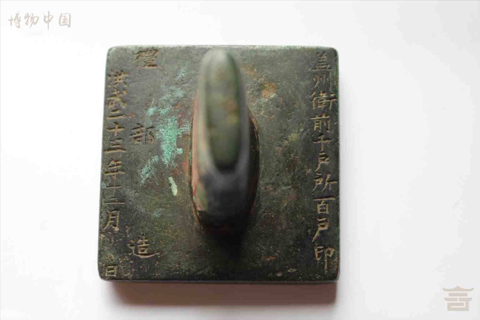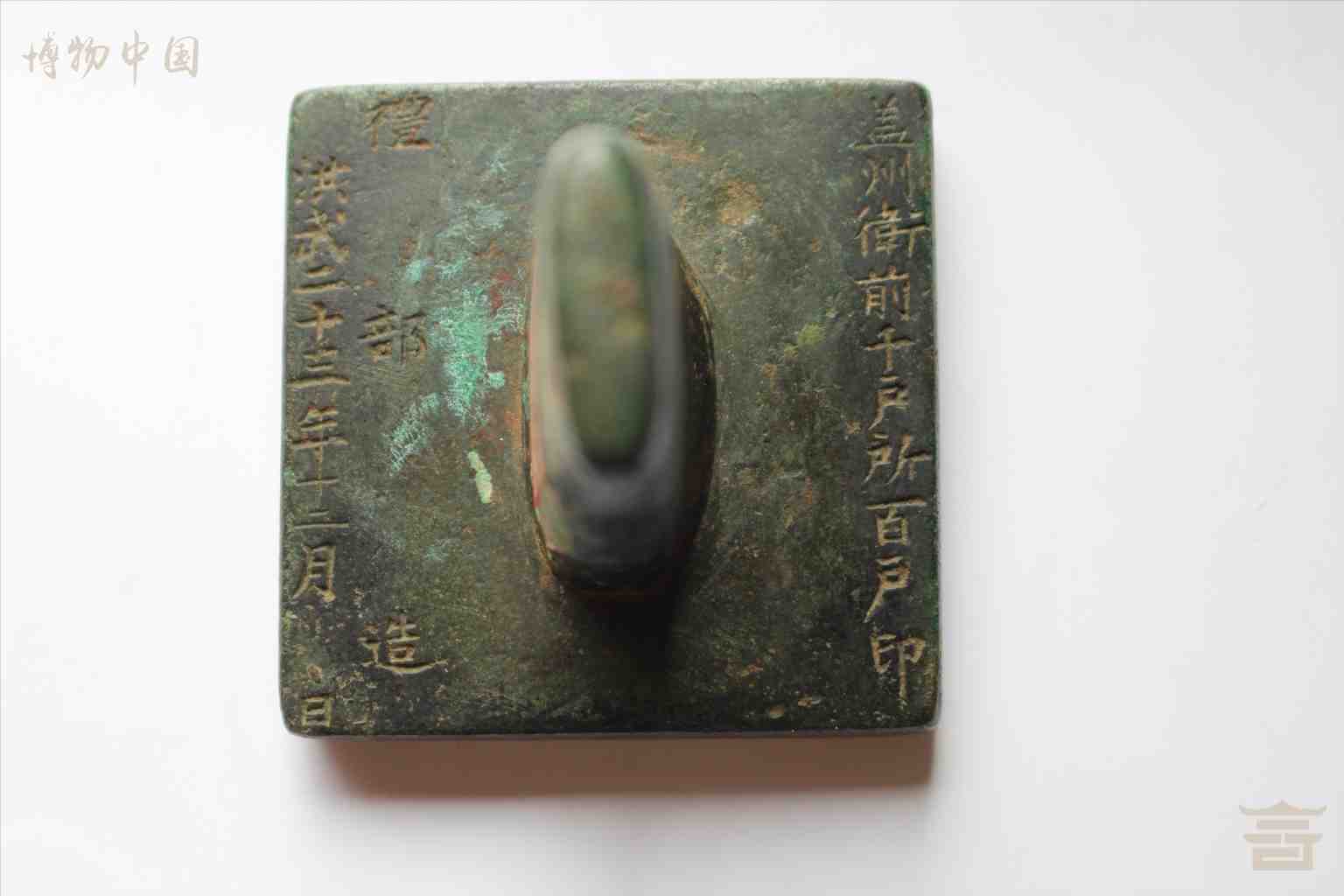 > 明九叠篆“盖州卫前千户所百户印“板钮方形铜官印