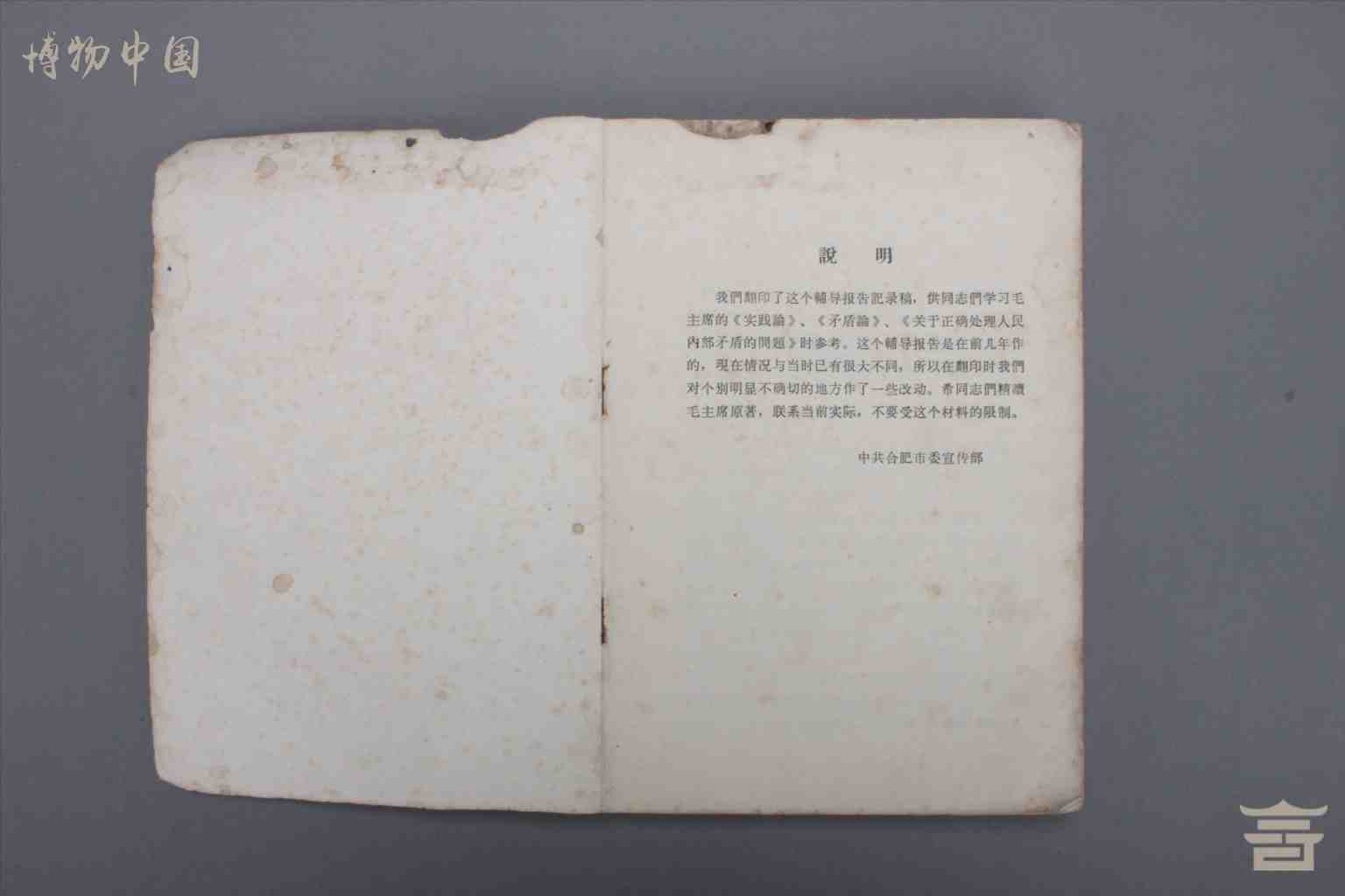> 李士怀用1964年合肥市委宣传部印的《关于“实践论”、“矛盾论”、“关于正确处理人民内部矛盾的问题”的辅导报告》