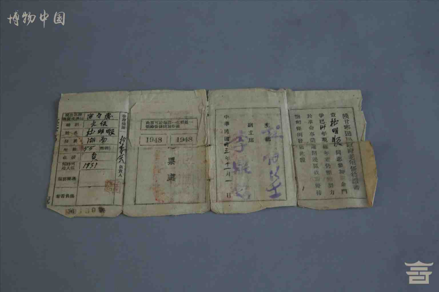 1944年陕甘宁边区政府颁发给杜明顺的老年优待证