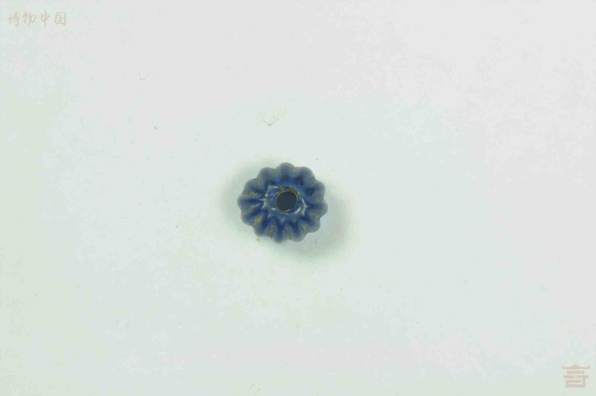 > 中华民国蓝色瓜纹穿孔玻璃珠