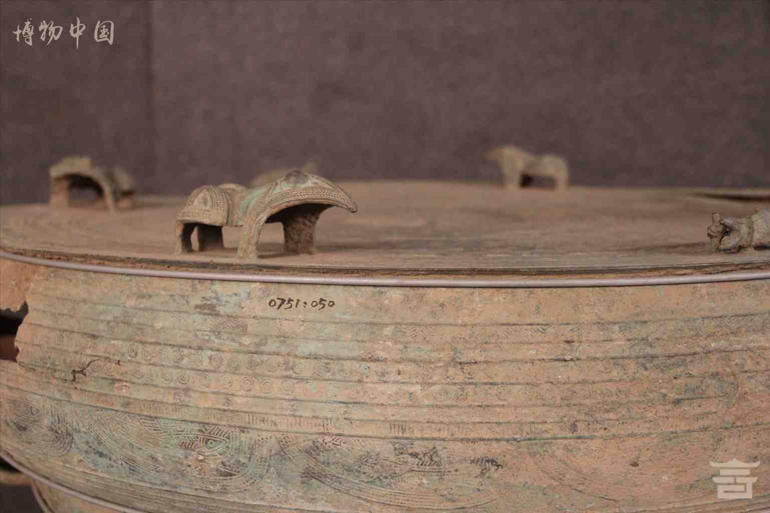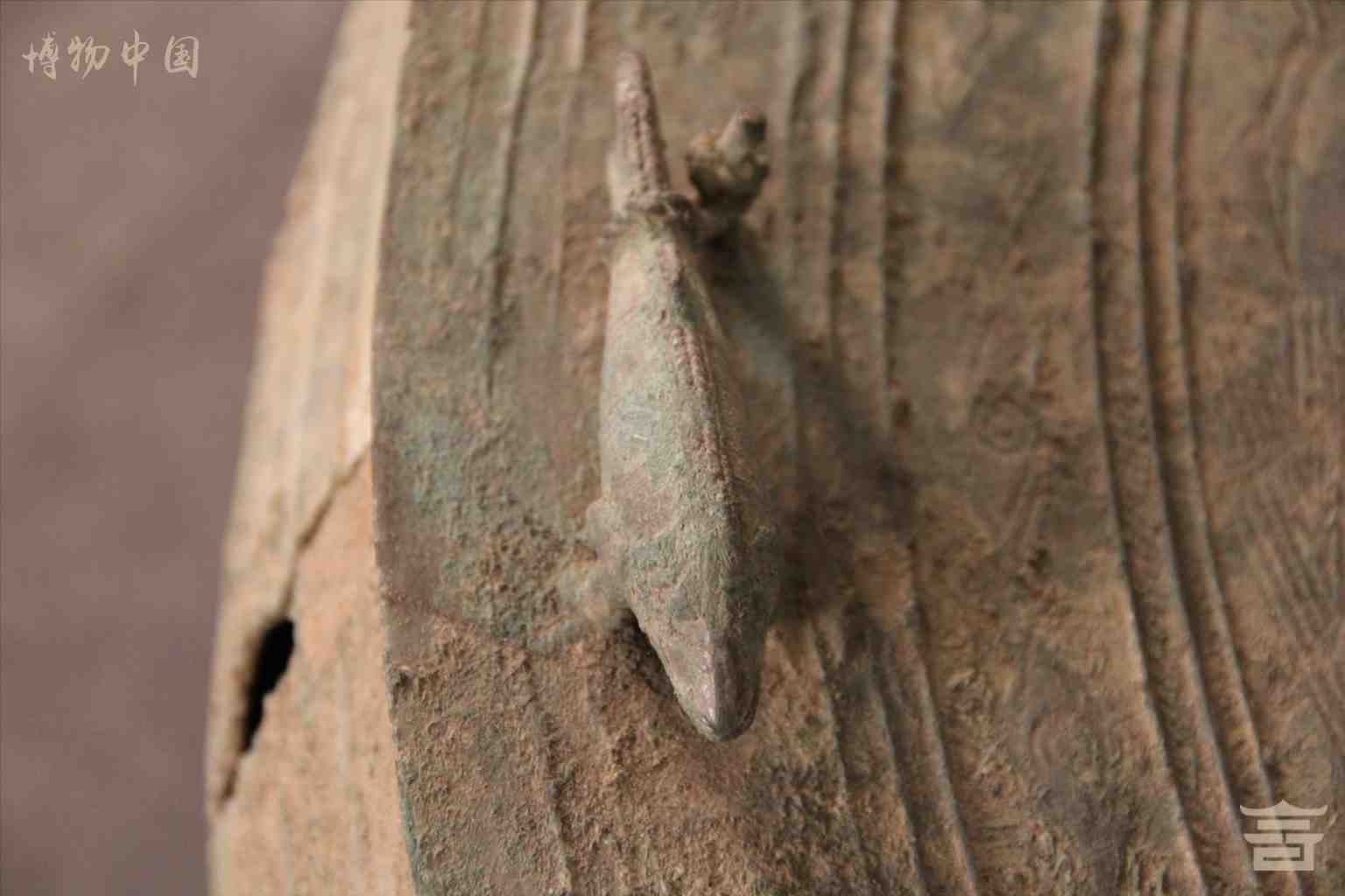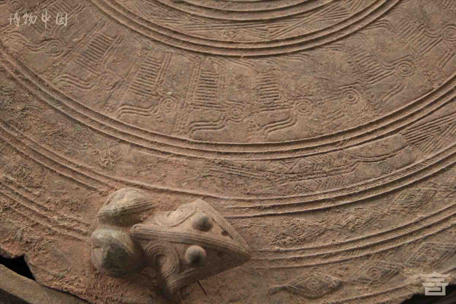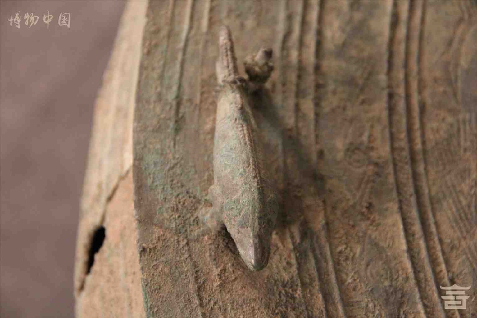 > 东汉 鱼饰变形羽人纹铜鼓(残)