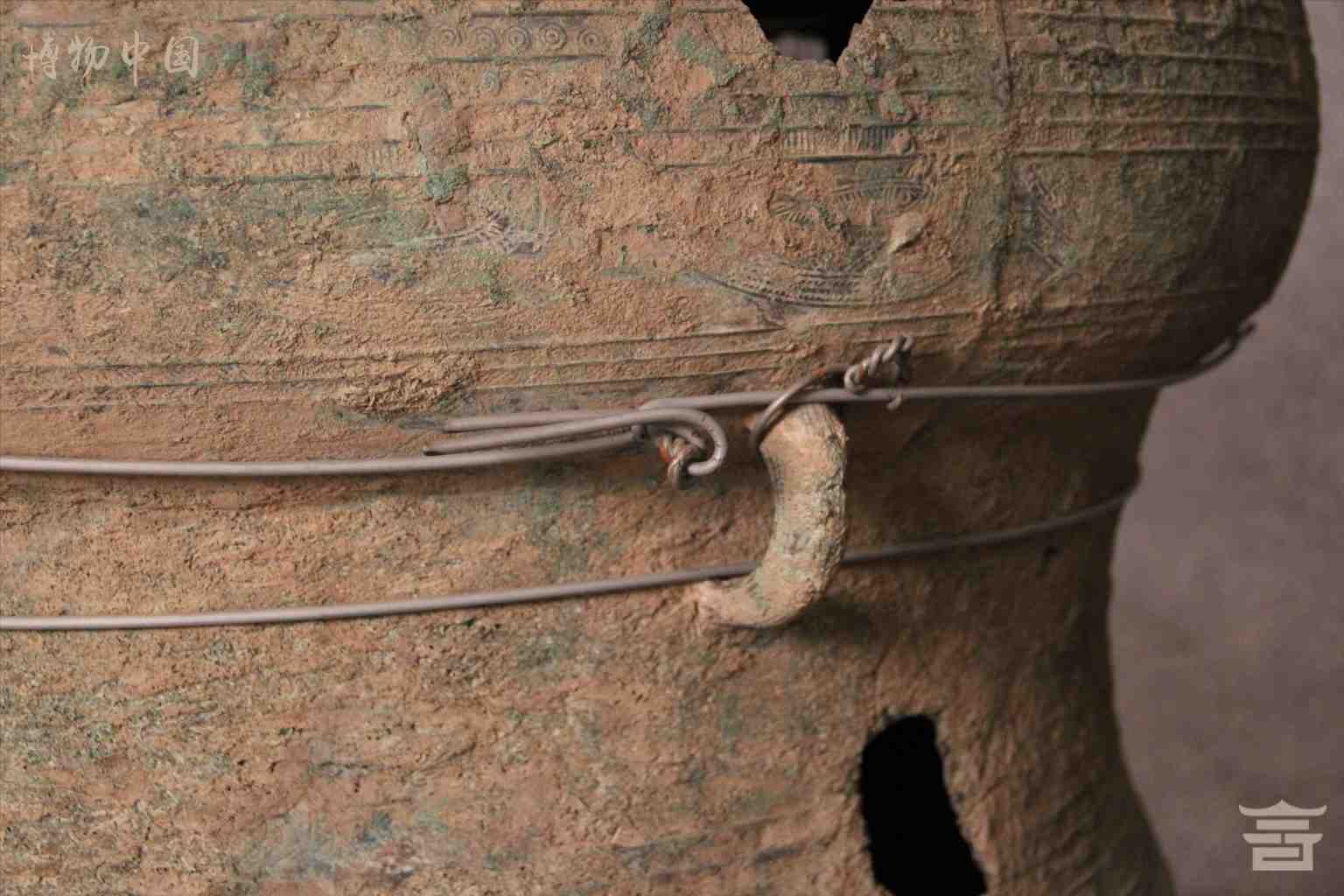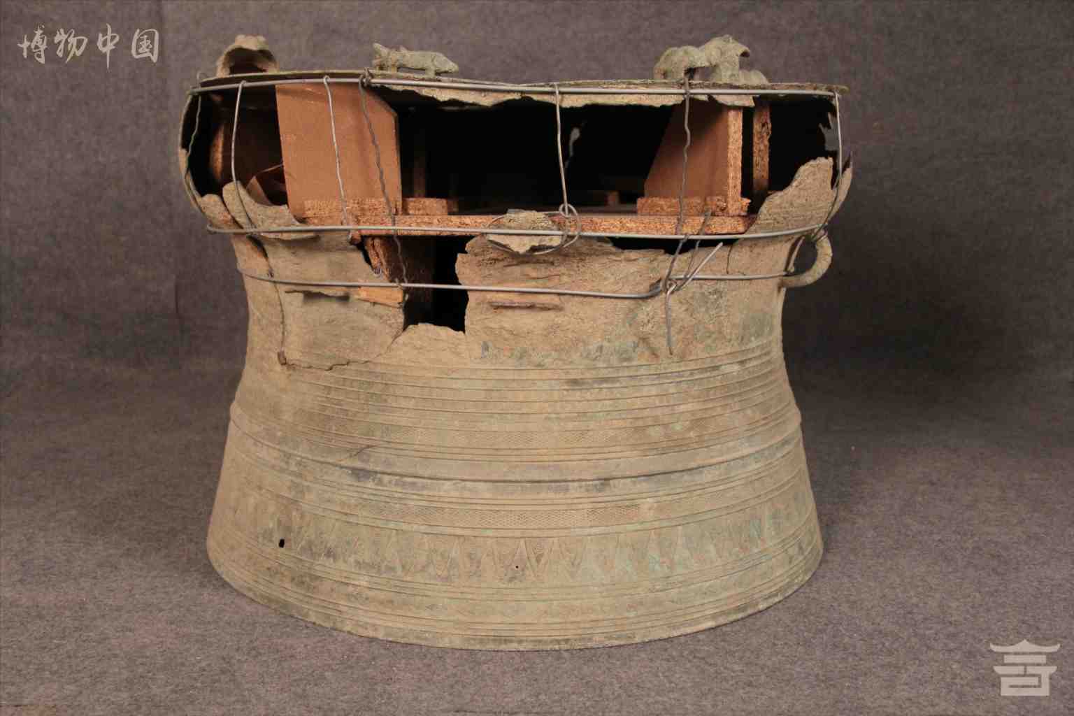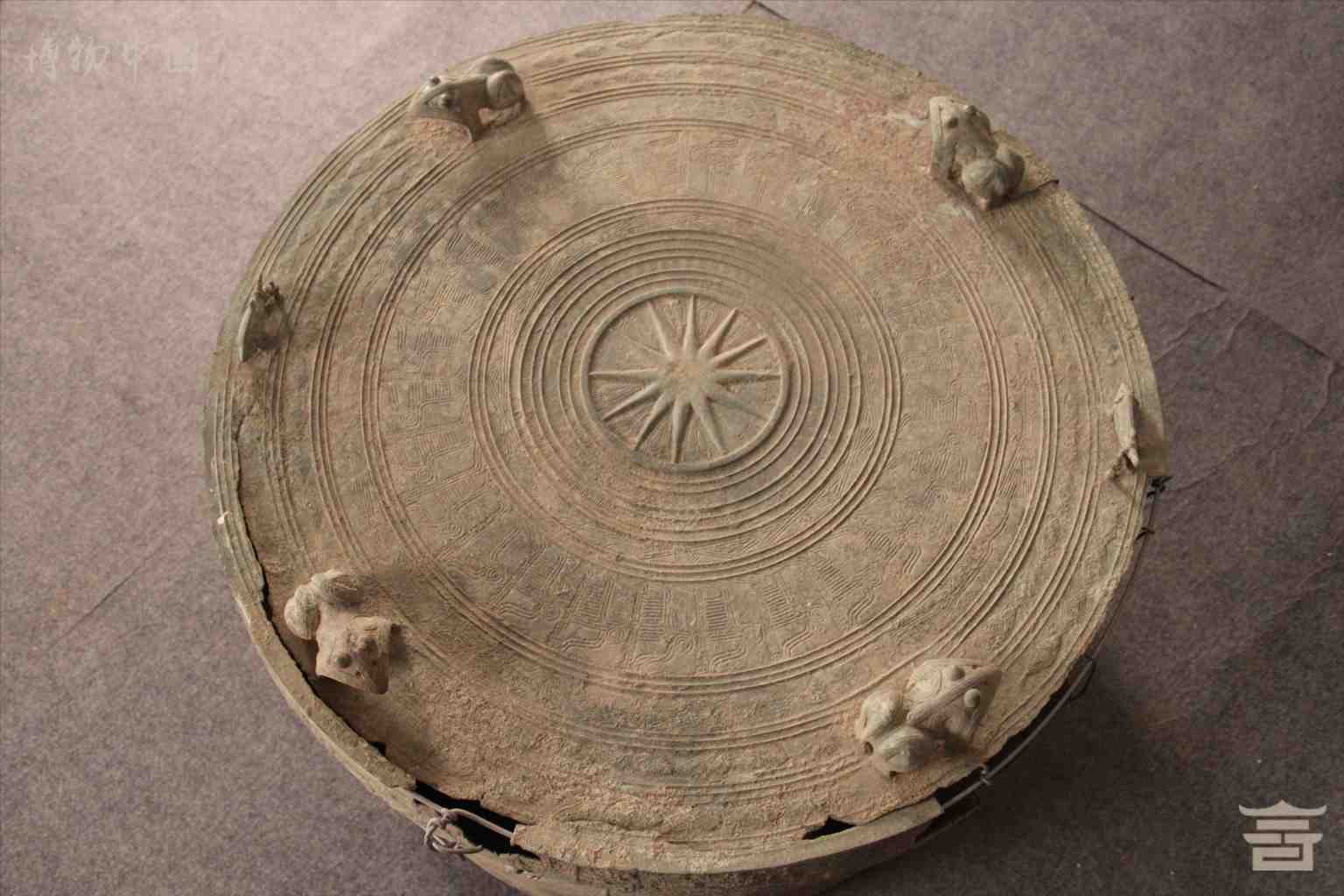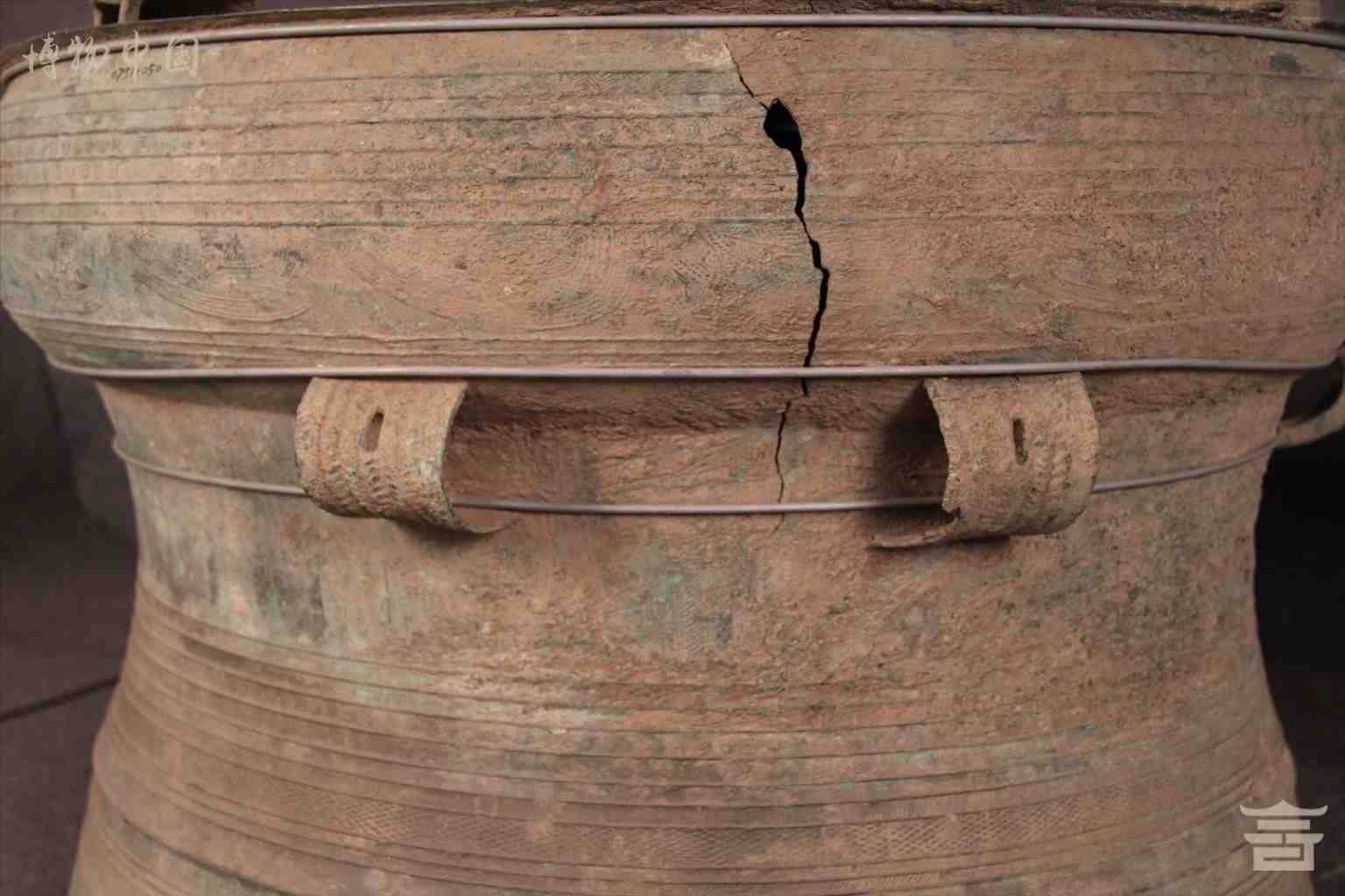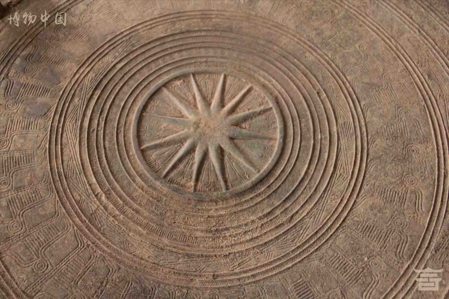 > 东汉 鱼饰变形羽人纹铜鼓(残)