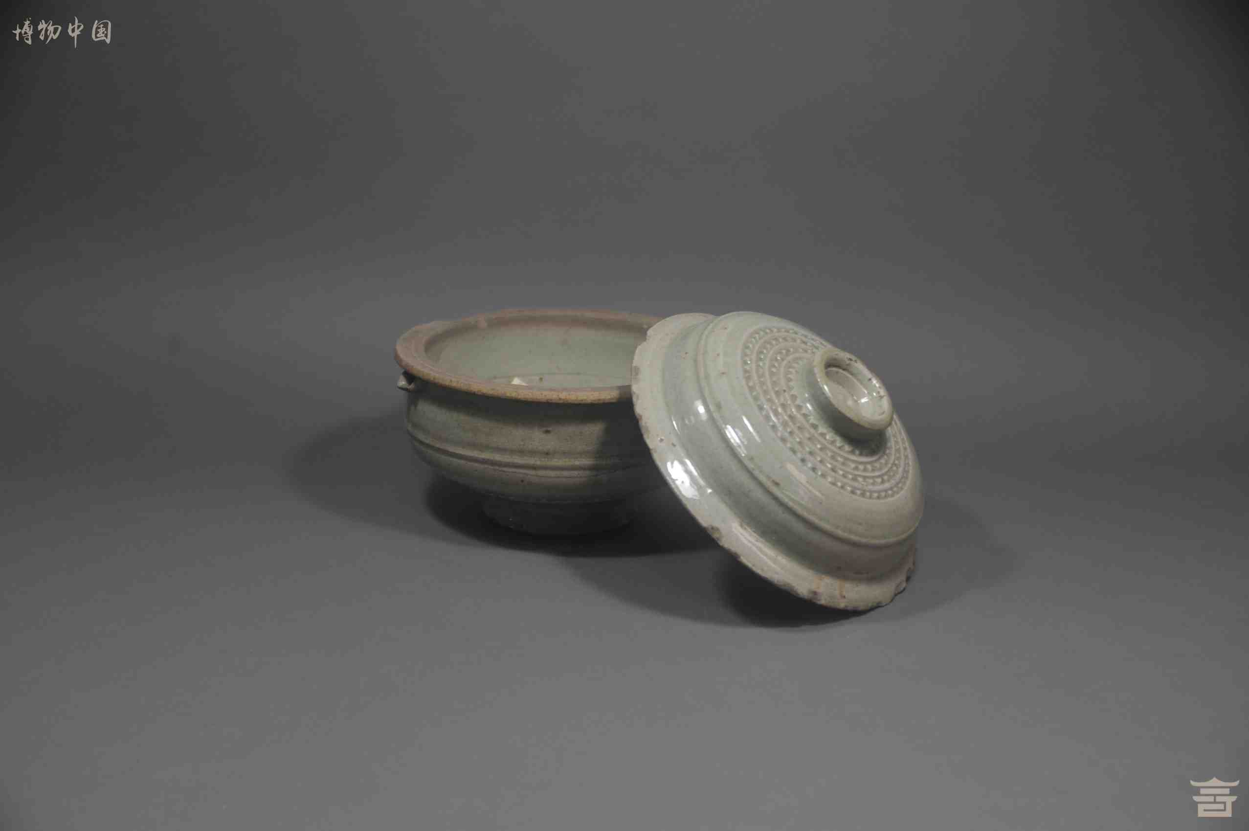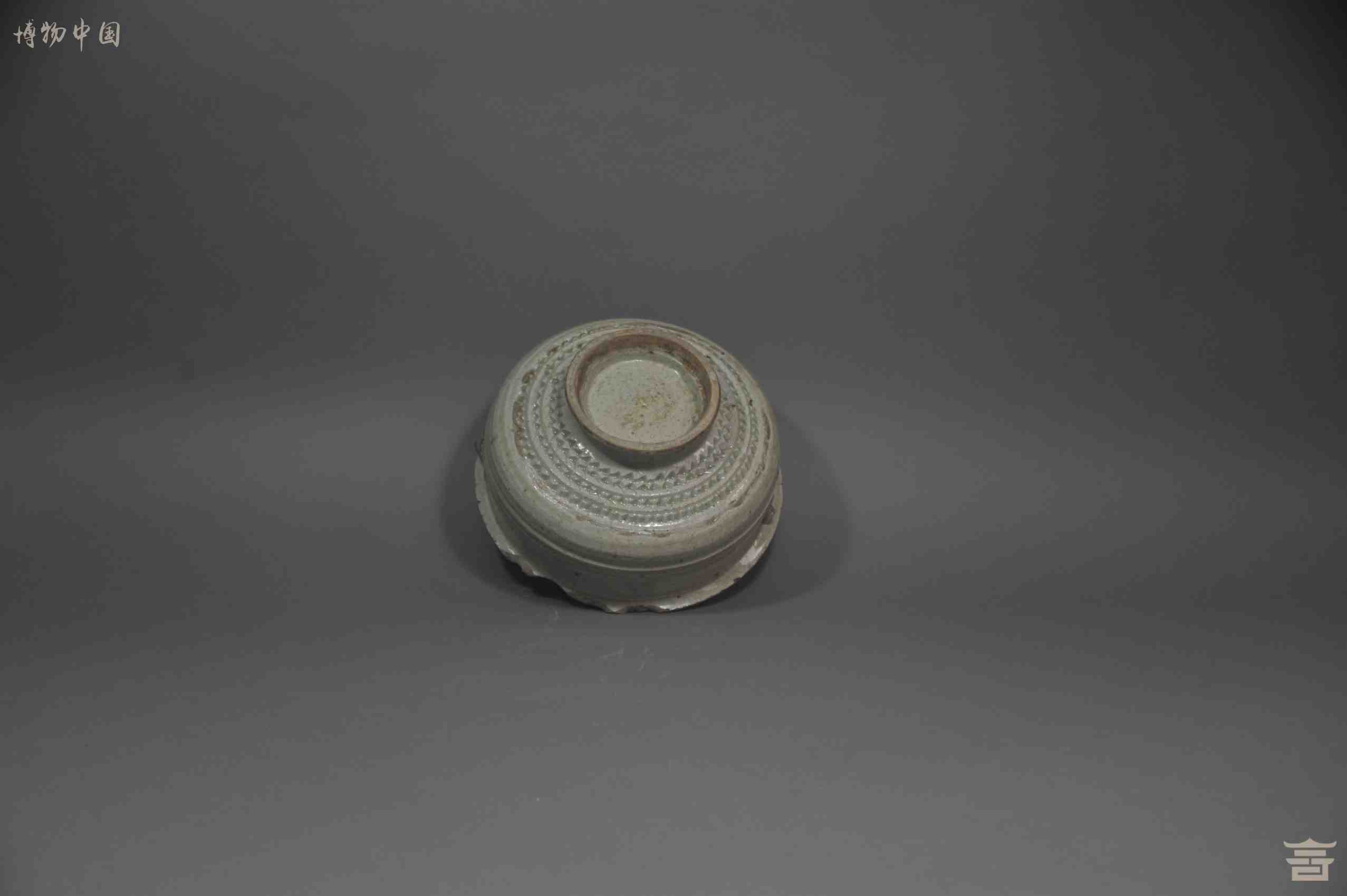 > 明代影青锯齿纹带盖瓷钵