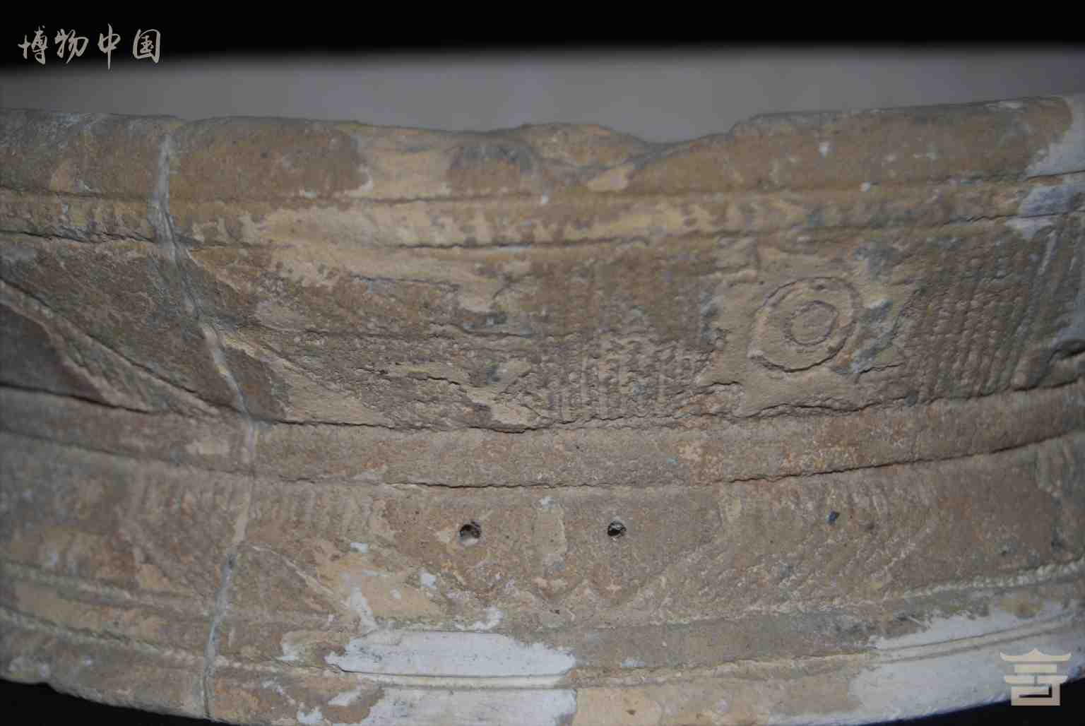 > 新石器时代高庙文化戳印兽面太阳纹陶盘