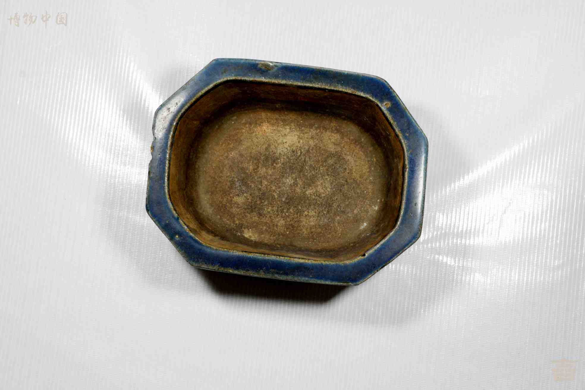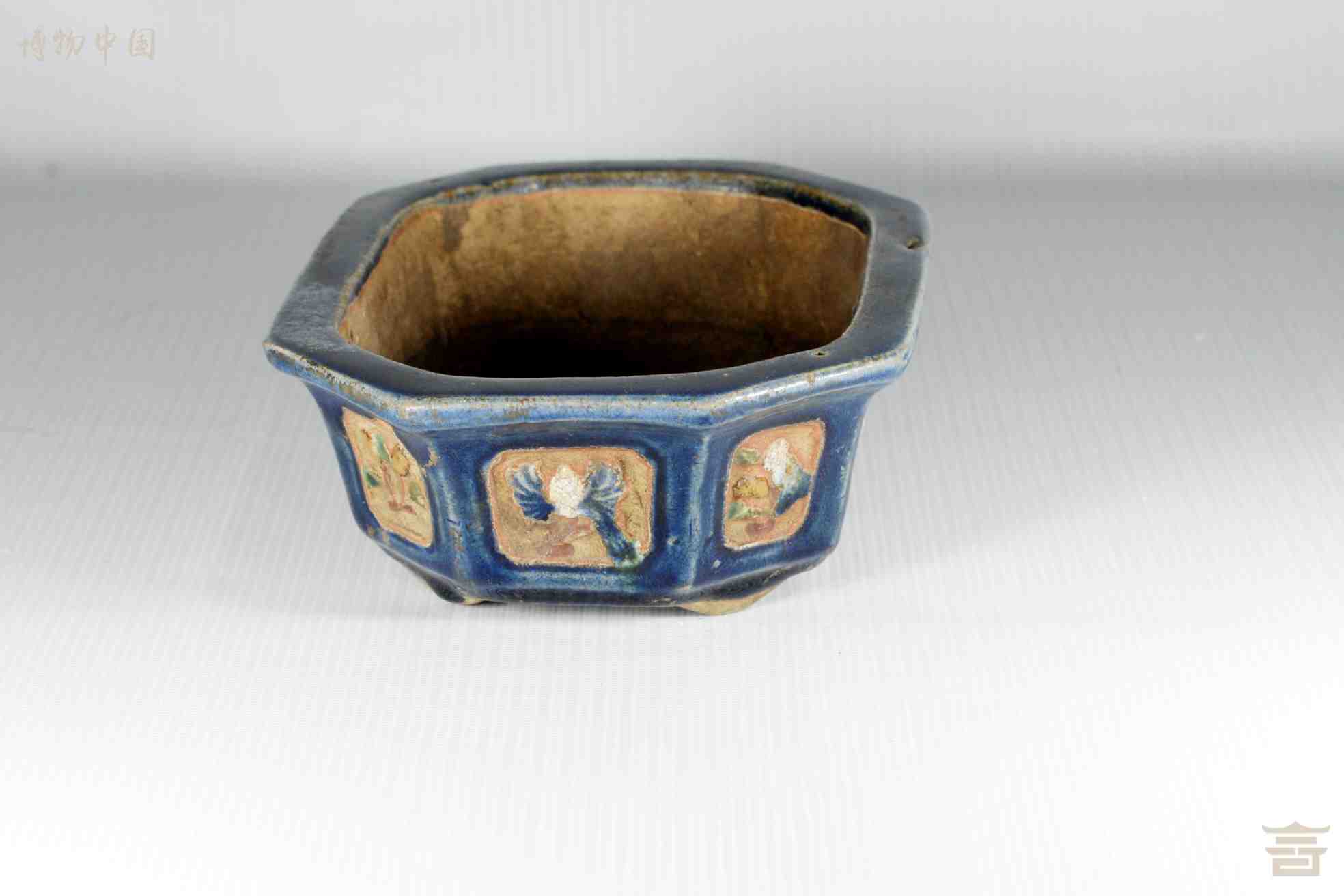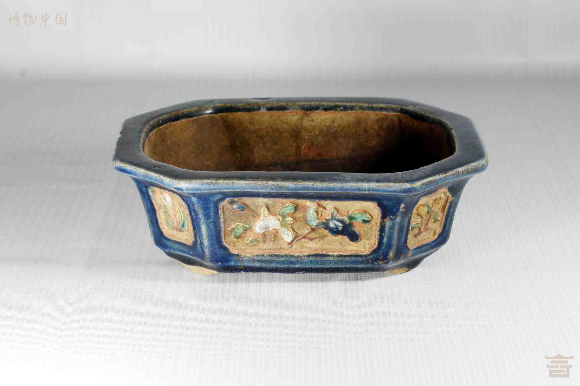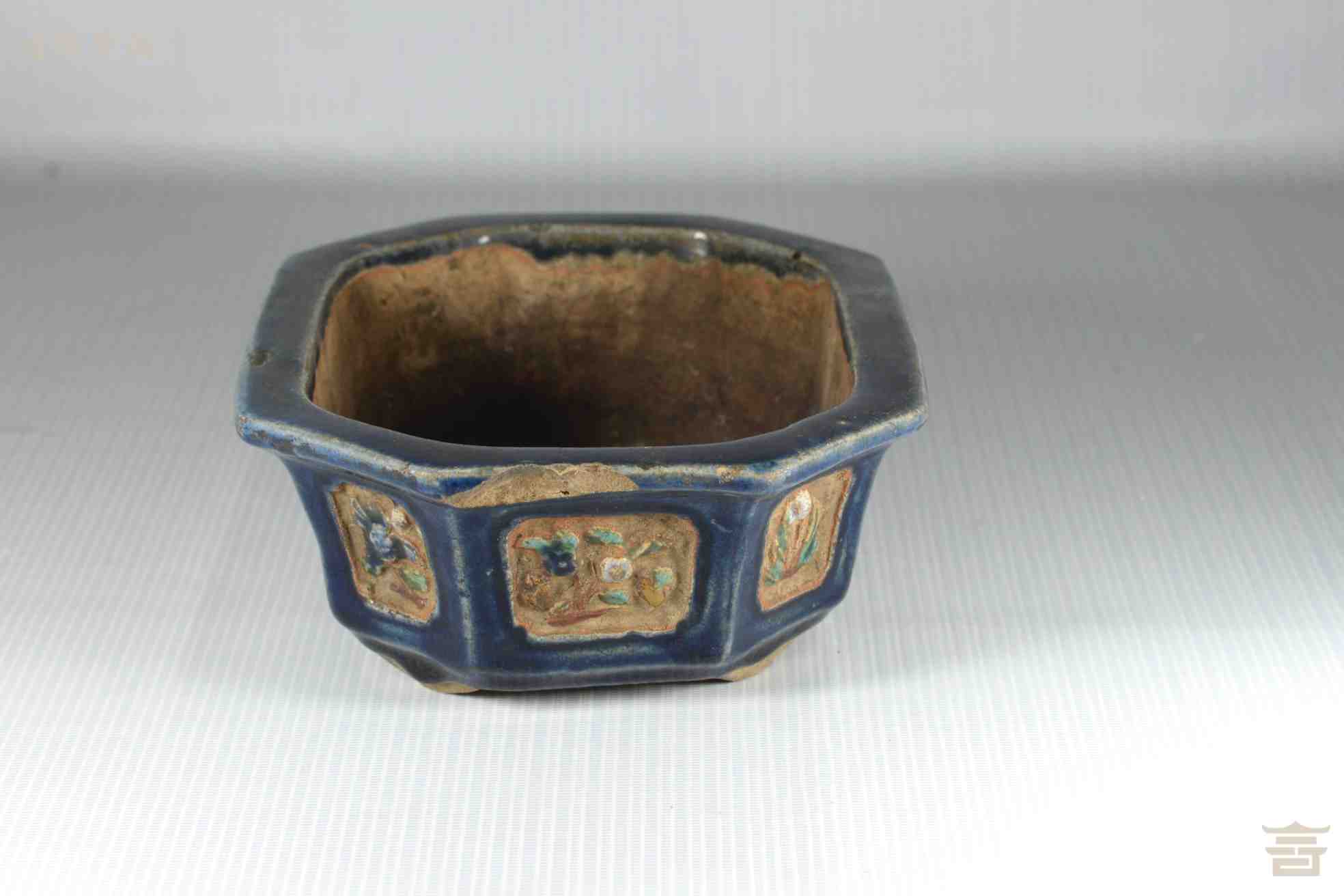 > 民国八棱口彩塑花纹陶洗
