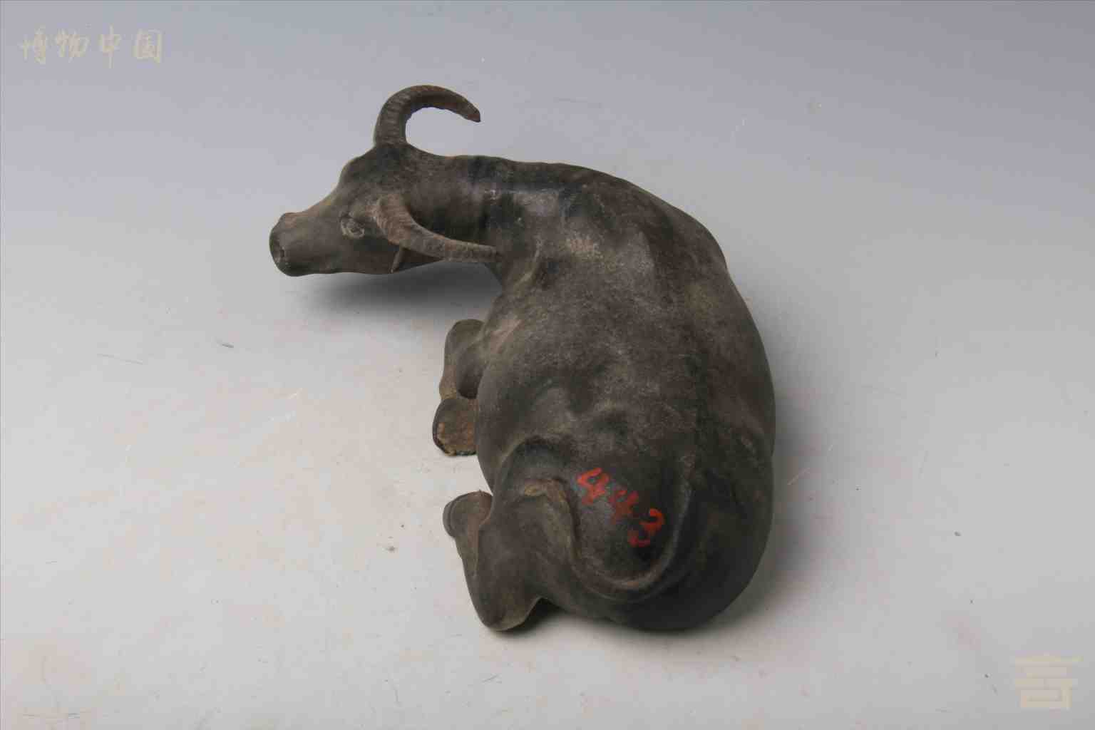 > 民国黑釉卧牛瓷塑