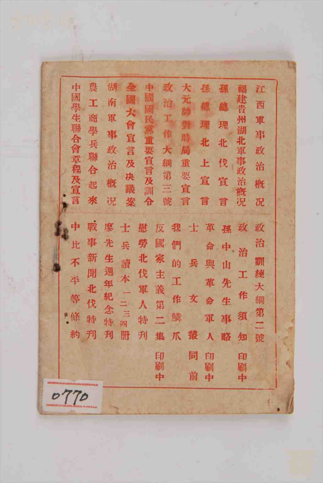 > 民国国民革命军总司令部政治部印《帝国主义》