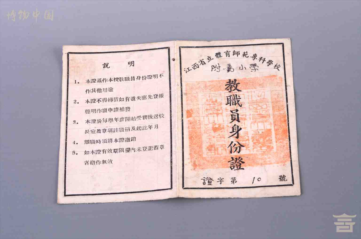 > 民国江西省立体育师范专科学校附属小学颁布给罗明珍的教职员身份证