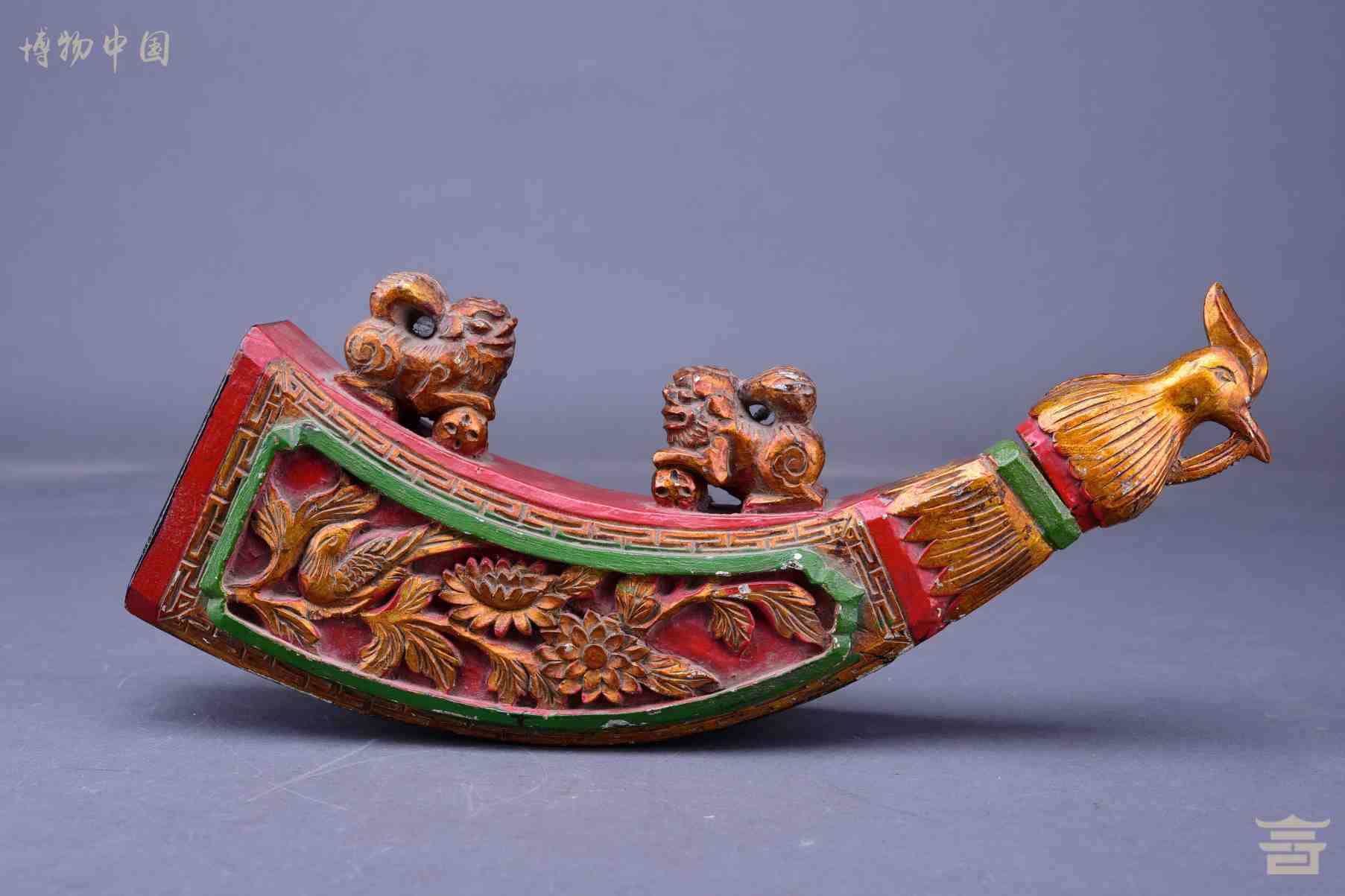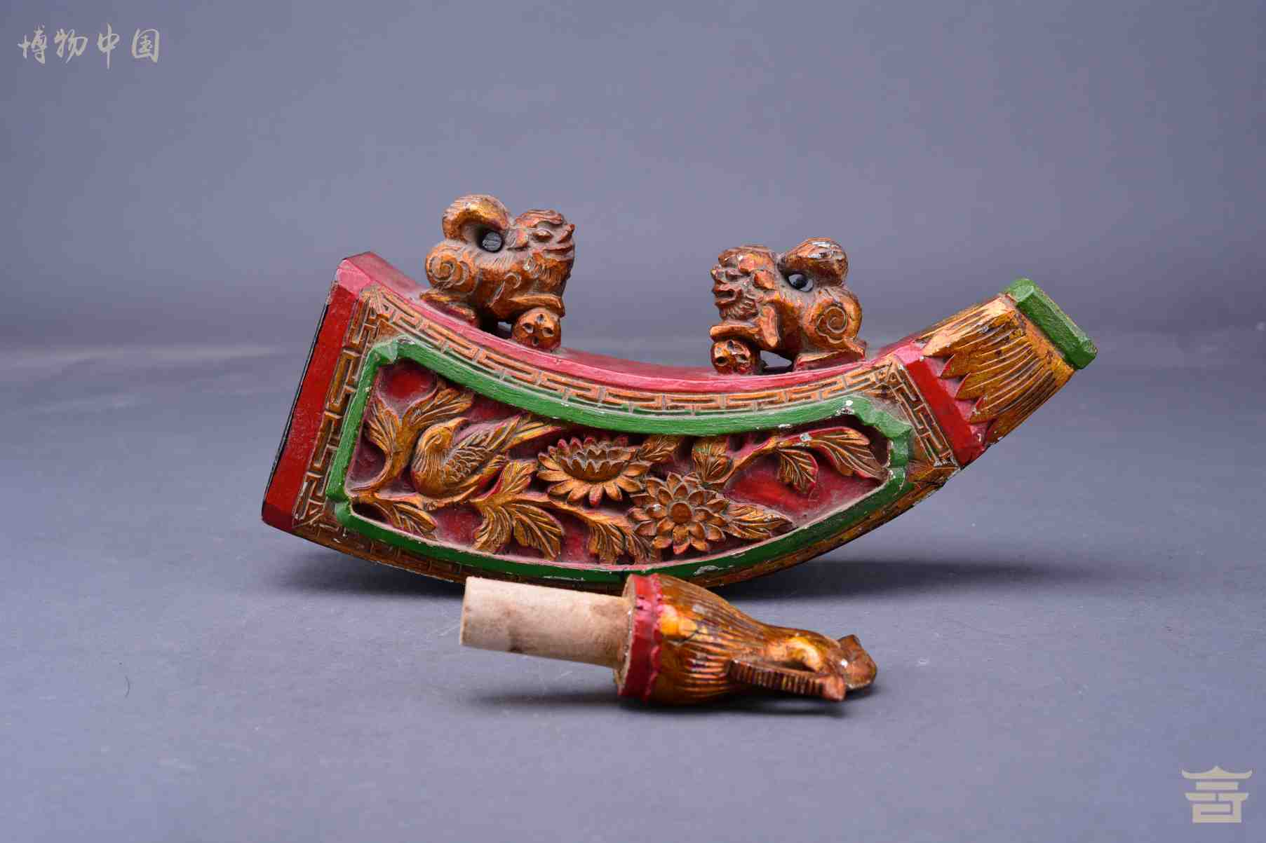 清木雕凤穿牡丹纹火药袋