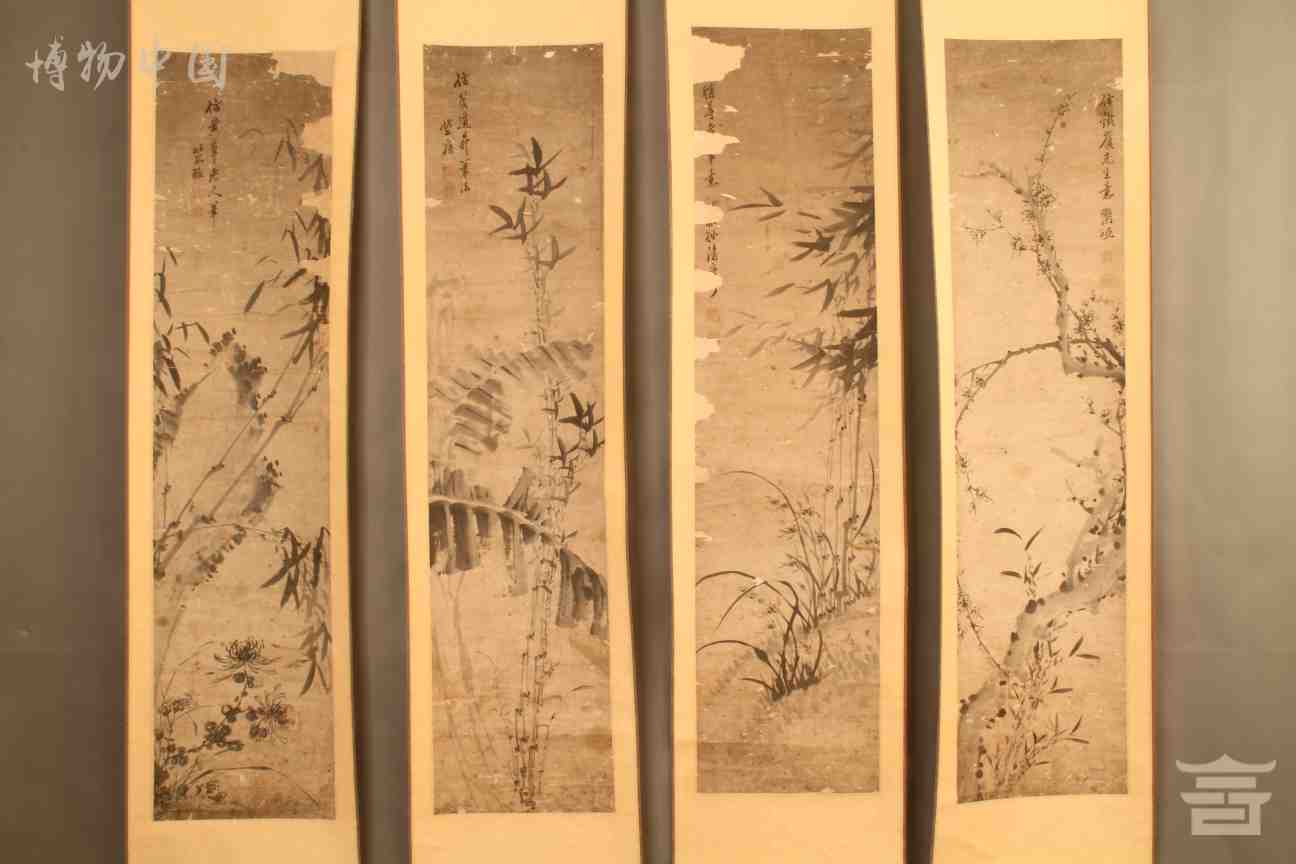 > 清孙清彦墨笔梅兰竹菊四条屏