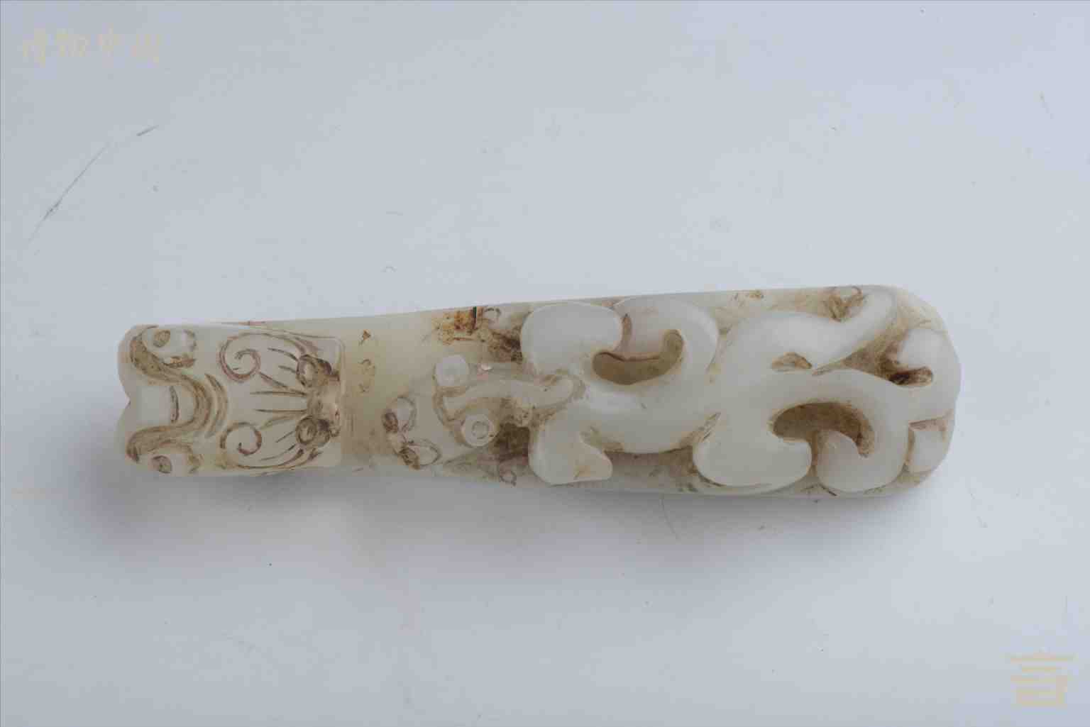 > 明代白玉透雕龙纹带钩