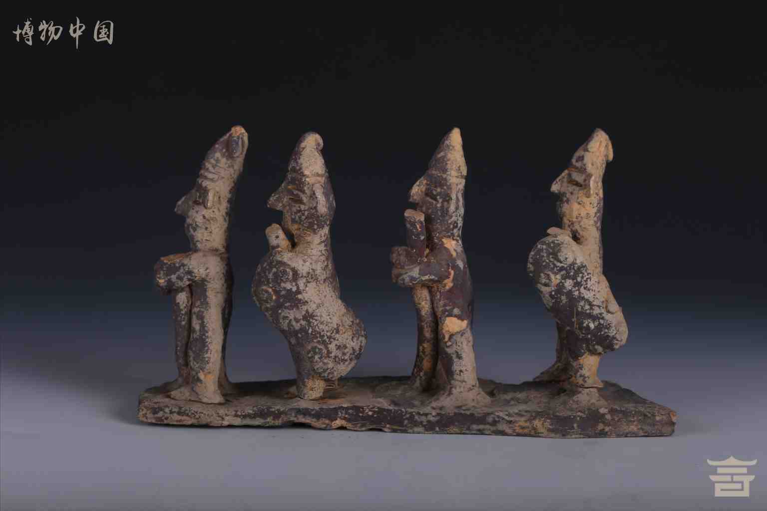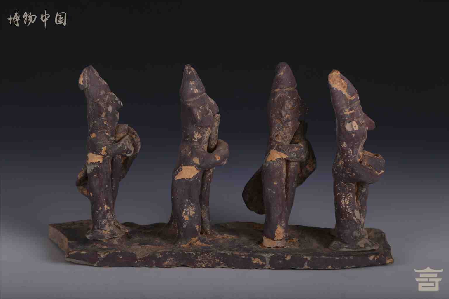 南朝酱褐釉四人歌伎陶俑