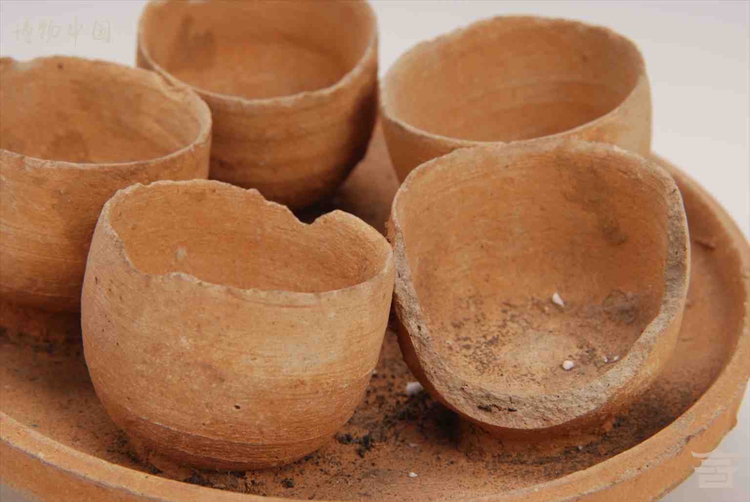 > 唐残青瓷带托五连杯