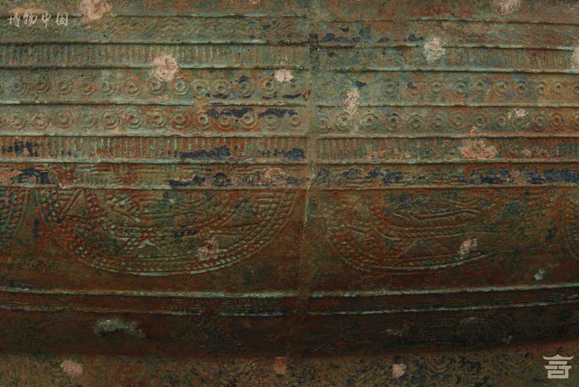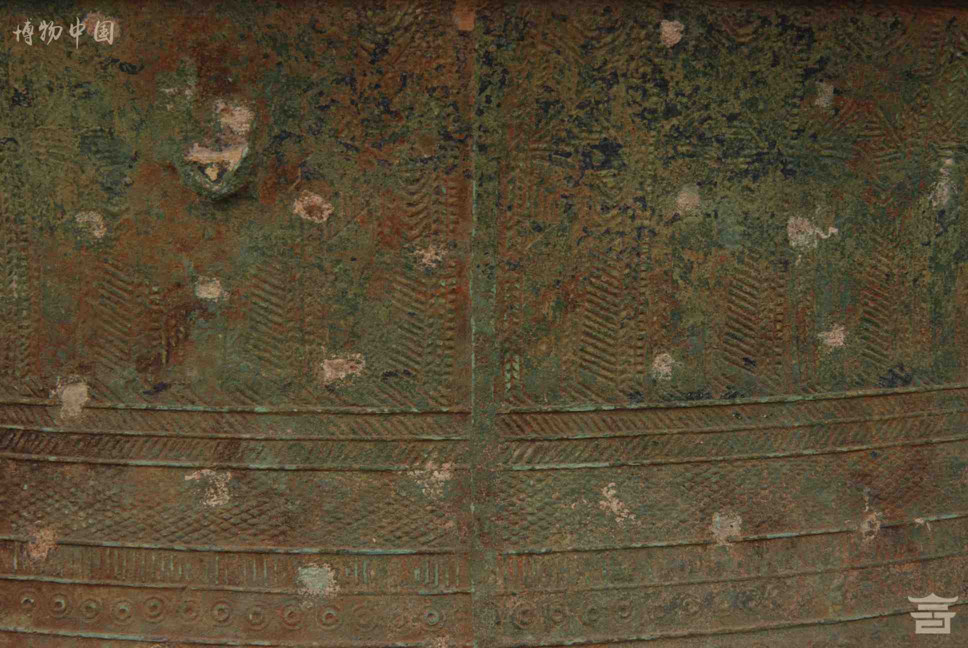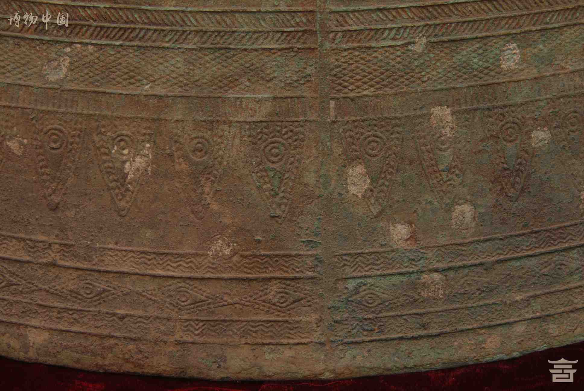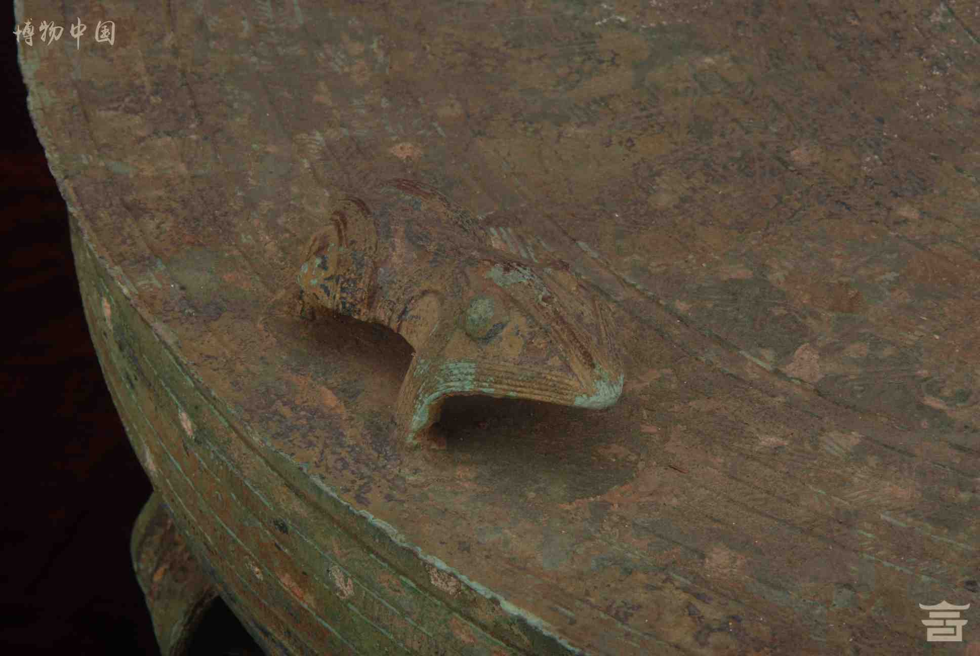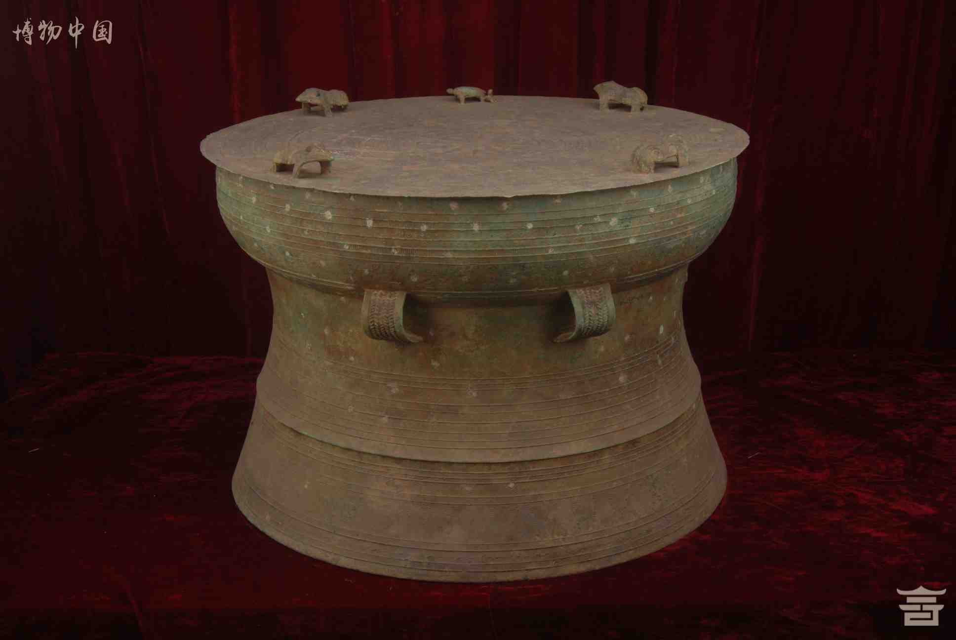 > 东汉四蛙间饰女童推龟羽人纹铜鼓
